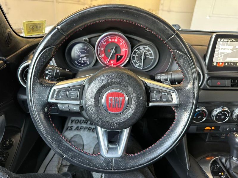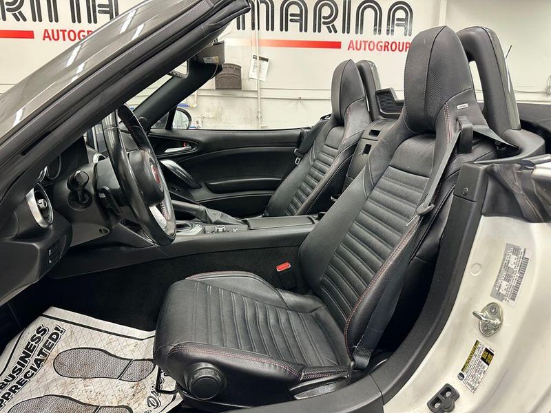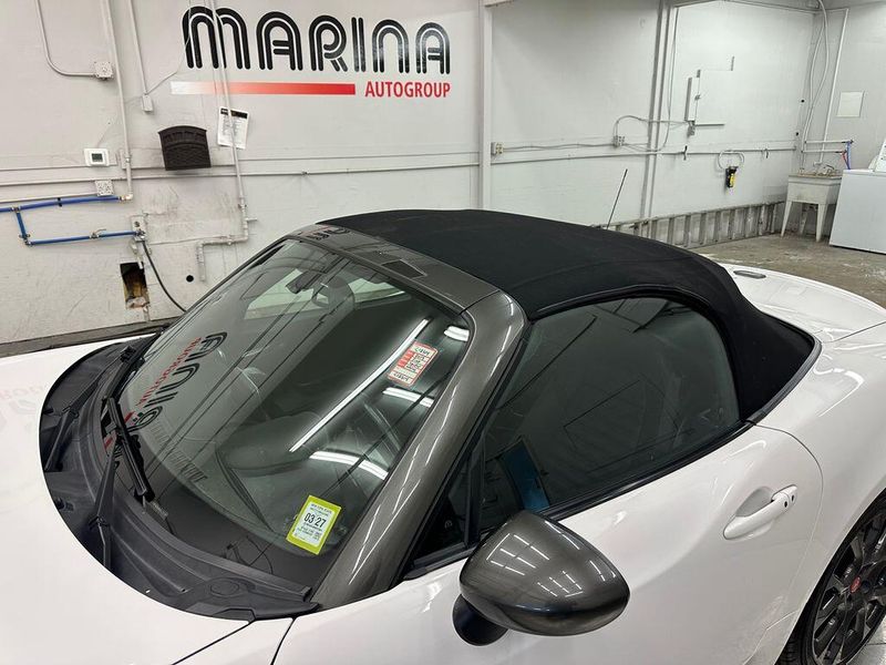 Bianco Gelato White 2017 Fiat 124 Spider Abarth RWD 6-Speed Aisin Automatic 1.4L I4 16V MultiAir Turbocharged Navigation, Leather, Bluetooth, Satellite Radio, Back Up Camera, Passed Dealer Inspection, Fresh Detail, AutoCheck Vehicle History Reports with Buyback Protection, Fresh Oil Change, Heated Seats, Clean Carfax, 6 Speakers, Air Conditioning, AM/FM radio, Convertible roof lining, Convertible roof wind blocker, Front fog lights, Glass rear window, Heated front seats, Navigation System, ParkView Rear Back-Up Camera, Power steering, Power windows, Radio: AM/FM Bluetooth w/7'' Display, Remote keyless entry, Steering wheel mounted audio controls. Family Owned since 1989. With every purchase, our VIP Program includes lifetime inspections, first oil change and loaner vehicles / courtesy shuttle.