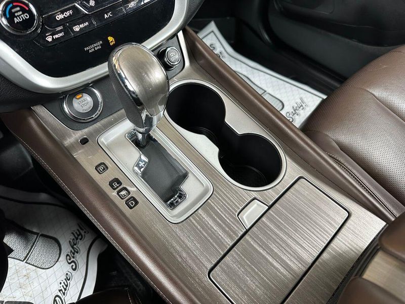 THIS VEHICLE INCLUDES THE FOLLOWING OPTIONS AND FEATURES: 11 Speakers, Air Conditioning, AM/FM radio: SiriusXM, Apple CarPlay, CD player, Front fog lights, Heated front seats, Leather-Appointed Seat Trim, Memory seat, Navigation System, Power driver seat, Power Liftgate, Power passenger seat, Power steering, Power windows, Radio data system, Radio: AM/FM/CD Audio System w/Navigation, Remote keyless entry, Steering wheel mounted audio controls, 4-Wheel Disc Brakes, 4.677 Axle Ratio, ABS brakes, Alloy wheels, Anti-whiplash front head restraints, Auto-dimming Rear-View mirror, Automatic temperature control, Blind Spot Warning, Brake assist, Bumpers: body-color, Carpeted Floor Mats & Cargo Mat, Compass, Delay-off headlights, Driver door bin, Driver vanity mirror, Dual front impact airbags, Dual front side impact airbags, Electronic Stability Control, Four wheel independent suspension, Front anti-roll bar, Front Bucket Seats, Front Center Armrest w/Storage, Front dual zone A/C, Front reading lights, Fully automatic headlights, Garage door transmitter: HomeLink, Heated door mirrors, Heated Front Bucket Seats, Illuminated entry, Knee airbag, Leather Shift Knob, Low tire pressure warning, Occupant sensing airbag, Outside temperature display, Overhead airbag, Overhead console, Panic alarm, Passenger door bin, Passenger vanity mirror, Power door mirrors, Rear anti-roll bar, Rear Bumper Protector, Rear reading lights, Rear seat center armrest, Rear window defroster, Rear window wiper, Roof rack: rails only, Security system, Speed control, Speed-sensing steering, Speed-Sensitive Wipers, Splash Guards, Split folding rear seat, Spoiler, Tachometer, Telescoping steering wheel, Tilt steering wheel, Traction control, Trip computer, Turn signal indicator mirrors, Variably intermittent wipers, and Wheels: 18'' Machined Aluminum-Alloy.