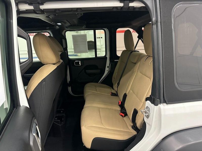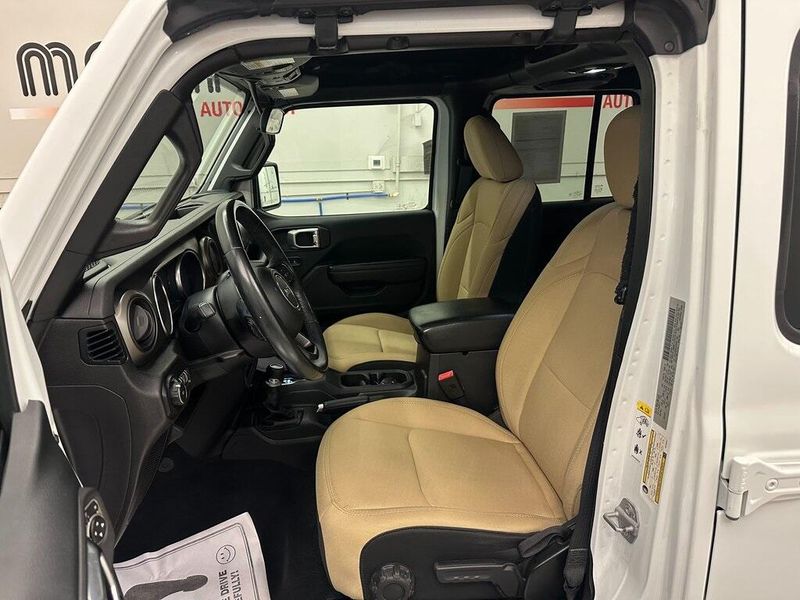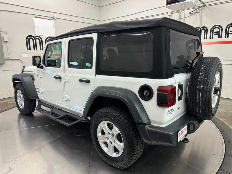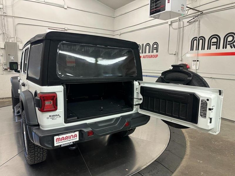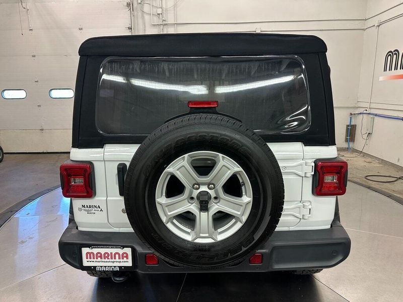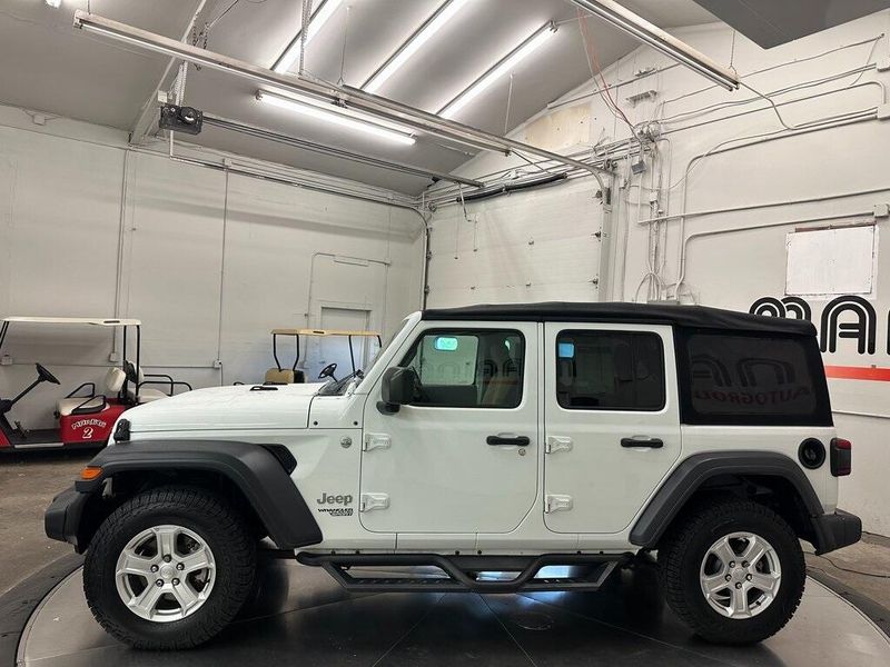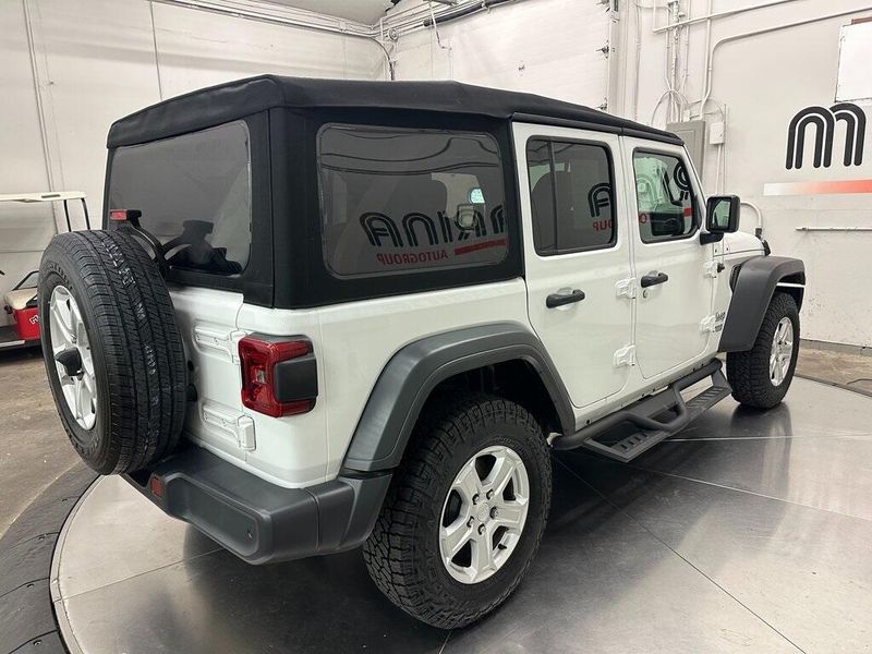 Certified. Bright White Clearcoat 2018 Jeep Wrangler Unlimited Sport S 4WD 8-Speed Automatic 2.0L I4 DOHC Bluetooth, Satellite Radio, Back Up Camera, One Owner, Passed Dealer Inspection, Fresh Detail, AutoCheck Vehicle History Reports with Buyback Protection, Fresh Oil Change, Remote Start, Clean Carfax, 7.0'' Touchscreen Display, 8 Speakers, Air Conditioning, Air Conditioning w/Auto Temperature Control, Air Filtering, AM/FM radio, Apple CarPlay, Automatic Headlamps, Blind Spot & Cross Path Detection, Cloth Low-Back Bucket Seats, Cluster 7.0'' TFT Color Display, Convenience Group, Deep Tint Sunscreen Windows, Front 1-Touch Down Power Windows, Front fog lights, Google Android Auto, GPS Antenna Input, Injection Molded Black Rear Bumper, Integrated Center Stack Radio, Leather Wrapped Steering Wheel, LED Taillamps, ParkSense Rear Park Assist System, ParkView Rear Back-Up Camera, Power Heated Mirrors, Power steering, Quick Order Package 28S Sport S, Radio data system, Radio: Uconnect 3 w/5'' Display, Radio: Uconnect 4 w/7'' Display, Remote Keyless Entry, Safety Group, Security Alarm, SiriusXM Satellite Radio, Speed Sensitive Power Locks, Steering wheel mounted audio controls, Sun Visors w/Illuminated Vanity Mirrors, Technology Group, Universal Garage Door Opener, USB Host Flip, Wheels: 17'' x 7.5'' Tech Silver Aluminum. 90 DAY 3000 MILE WARRANTY, ROADSIDE ASSISTANCE, TOWING, 90 DAY SIRUSXM TRIAL.