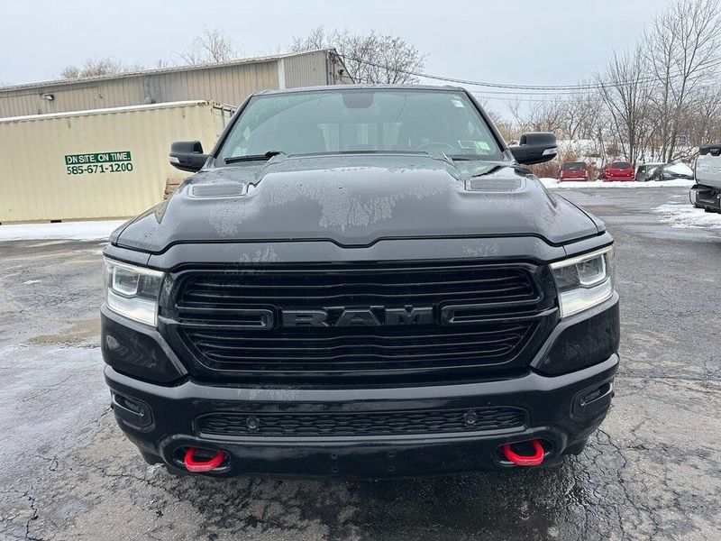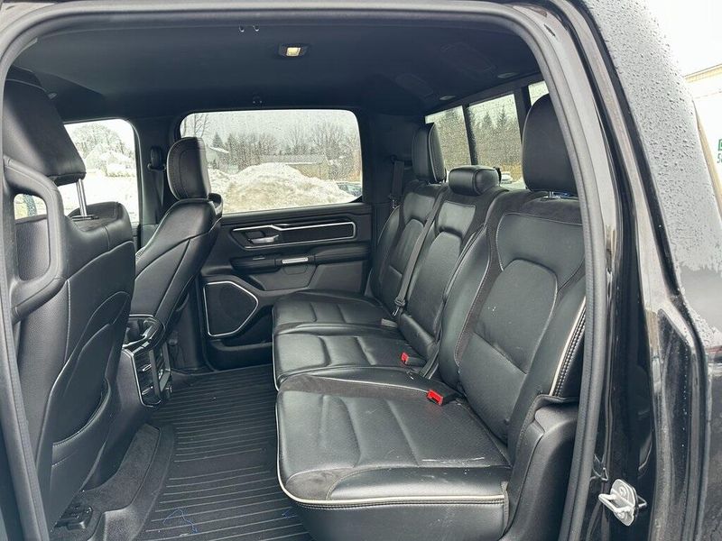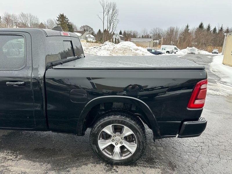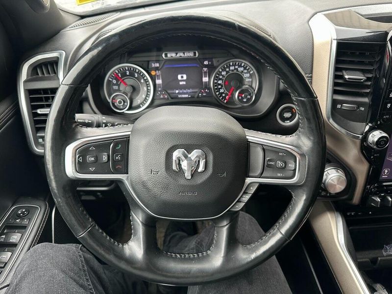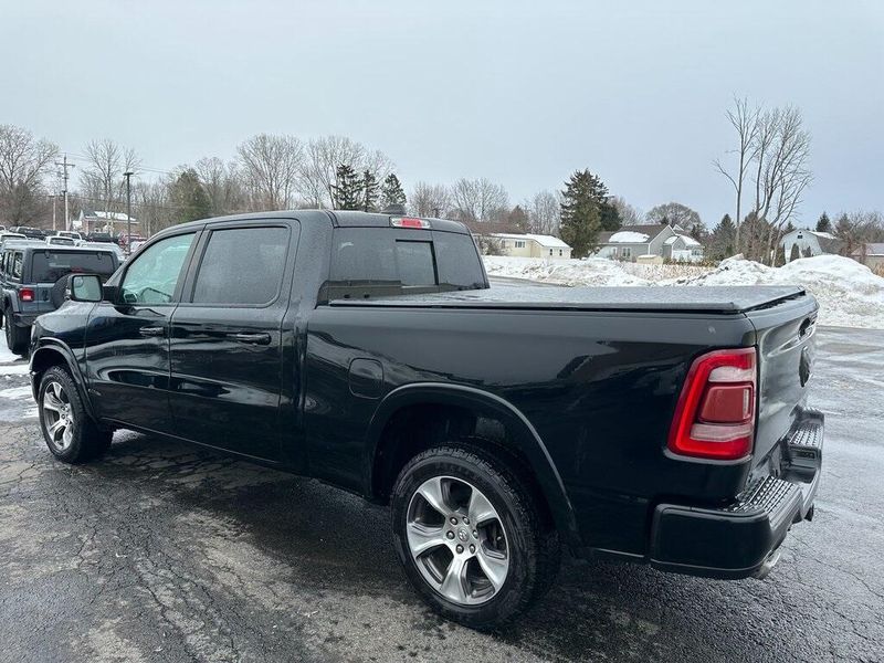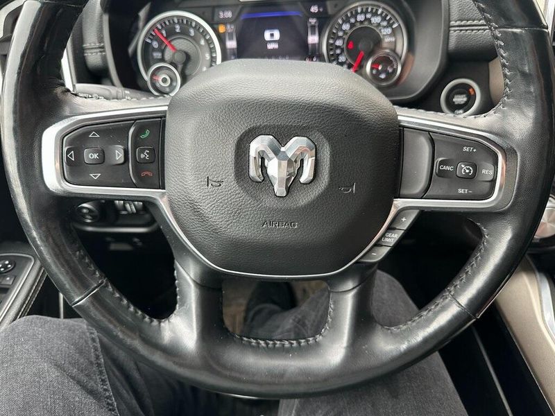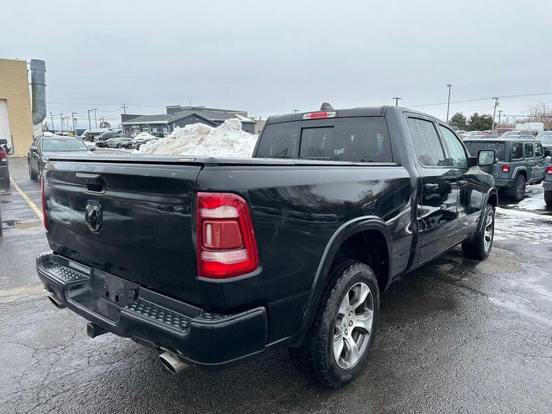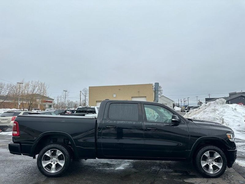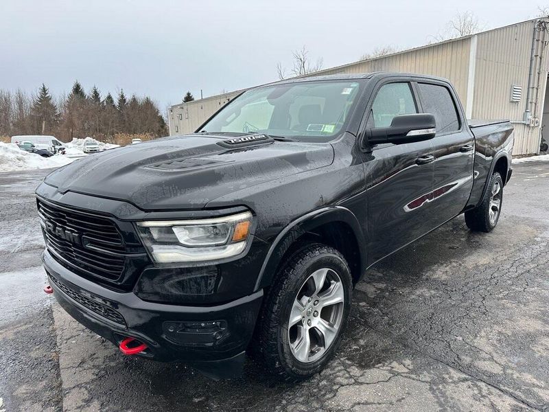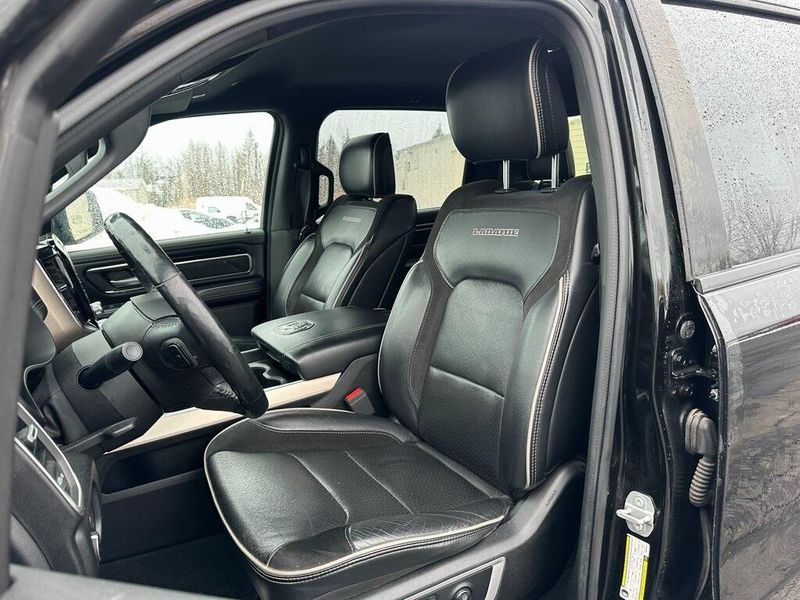Certified. Diamond Black Crystal Pearlcoat 2019 Ram 1500 Laramie 4WD 8-Speed Automatic HEMI 5.7L V8 Multi Displacement VVT Navigation, Leather, Bluetooth, Satellite Radio, Back Up Camera, AutoCheck Vehicle History Reports with Buyback Protection, Remote Start, Tow Package, Heated Seats, 1-Yr SiriusXM Guardian Trial, 10 Speakers, 12'' Touchscreen Display, 5-Year SiriusXM Traffic Service, Air Conditioning, AM/FM radio: SiriusXM, Apple CarPlay, Audio memory, Auto High Beam Headlamp Control, Black Interior Accents, Blind Spot & Cross Path Detection, Body Color Door Handles, Body Color Front Bumper, Body Color Rear Bumper w/Step Pads, Disassociated Touchscreen Display, Driver Seat Memory, E-Locker Rear Axle, Foam Bottle Insert (Door Trim Panel), For Details, Visit DriveUconnect.com, Front Extra HD Shock Absorbers, Front fog lights, Google Android Auto, GPS Antenna Input, GPS Navigation, Grille B/Color Outline 3 Texture 4, HD Radio, Heated Front Seats, Heated front seats, Hill Descent Control, Integrated Center Stack Radio, Laramie Level 1 Equipment Group, Leather Trim 40/20/40 Bench Seat, Leather Trimmed Bucket Seats, Memory seat, No Satellite Coverage w/HI/AK/PR/VI/GU, Off Road Decals, Off Road Group, ParkSense Front/Rear Park Assist w/Stop, ParkView Rear Back-Up Camera, Pedal memory, Power Chrome Trailer Tow Mirrors, Power driver seat, Power Heated Fold-Away Mirrors, Power steering, Power windows, Quick Order Package 25H Laramie, Radio data system, Radio: Uconnect 12 w/Navigation, Radio: Uconnect 4 w/8.4'' Display, Rain Sensitive Windshield Wipers, Rear 60/40 Folding Split Recline Seat, Rear Extra HD Shock Absorbers, Remote keyless entry, Remote Tailgate Release, Single Disc Remote CD Player, SiriusXM Satellite Radio, SiriusXM Traffic Plus, SiriusXM Travel Link, SiriusXM w/360L, Sport Appearance Package, Sport Performance Hood, Steering wheel mounted audio controls, Tailgate Ajar Warning Lamp, Tow Hooks, Trailer Brake Control, Trailer Tow Group, Trailer Tow Mirrors, USB Host Flip, Wheels: 20'' x 9'' Premium Painted w/Inserts. 90 DAY 3000 MILE WARRANTY, ROADSIDE ASSISTANCE, TOWING, 90 DAY SIRUSXM TRIAL.