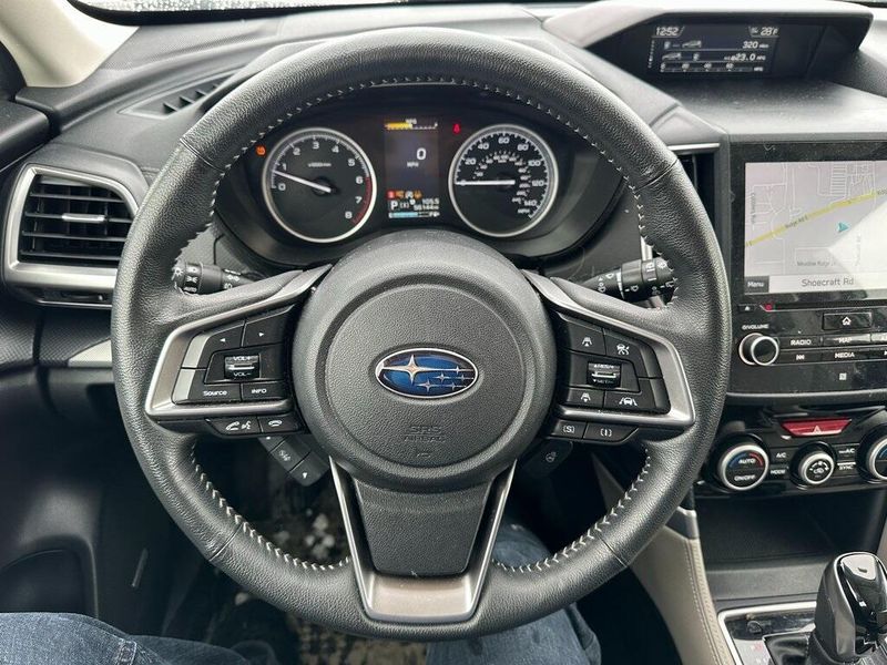 THIS VEHICLE INCLUDES THE FOLLOWING OPTIONS AND FEATURES: 6 Speakers, Air Conditioning, AM/FM radio: SiriusXM, CD player, Exterior Parking Camera Rear, Front fog lights, Heated Front Bucket Seats, Heated front seats, Navigation System, Power driver seat, Power Liftgate, Power moonroof: Panoramic, Power steering, Power windows, Radio data system, Radio: Subaru Starlink 8.0'' Multimedia Plus System, Remote keyless entry, Steering wheel mounted audio controls, 3.70 Axle Ratio, 4-Wheel Disc Brakes, ABS brakes, Alloy wheels, Auto High-beam Headlights, Automatic temperature control, Brake assist, Bumpers: body-color, Driver door bin, Driver vanity mirror, Dual front impact airbags, Dual front side impact airbags, Electronic Stability Control, Emergency communication system: STARLINK Safety and Security, Four wheel independent suspension, Front anti-roll bar, Front Bucket Seats, Front Center Armrest, Front dual zone A/C, Front reading lights, Fully automatic headlights, Heated door mirrors, Illuminated entry, Knee airbag, Leather Shift Knob, Low tire pressure warning, Occupant sensing airbag, Outside temperature display, Overhead airbag, Overhead console, Panic alarm, Passenger door bin, Passenger vanity mirror, Perforated Leather-Trimmed Upholstery, Power door mirrors, Rear anti-roll bar, Rear seat center armrest, Rear window defroster, Rear window wiper, Roof rack: rails only, Security system, Speed control, Speed-sensing steering, Split folding rear seat, Spoiler, STARLINK/Apple CarPlay/Android Auto, Tachometer, Telescoping steering wheel, Tilt steering wheel, Traction control, Trip computer, Turn signal indicator mirrors, Variably intermittent wipers, and Wheels: 18'' x 7.0J Black Machine Finish Alum Alloy.
