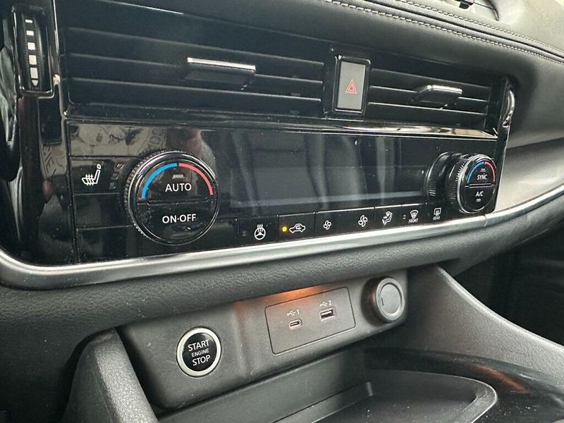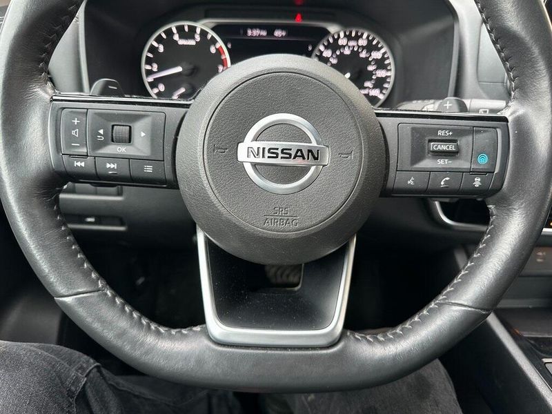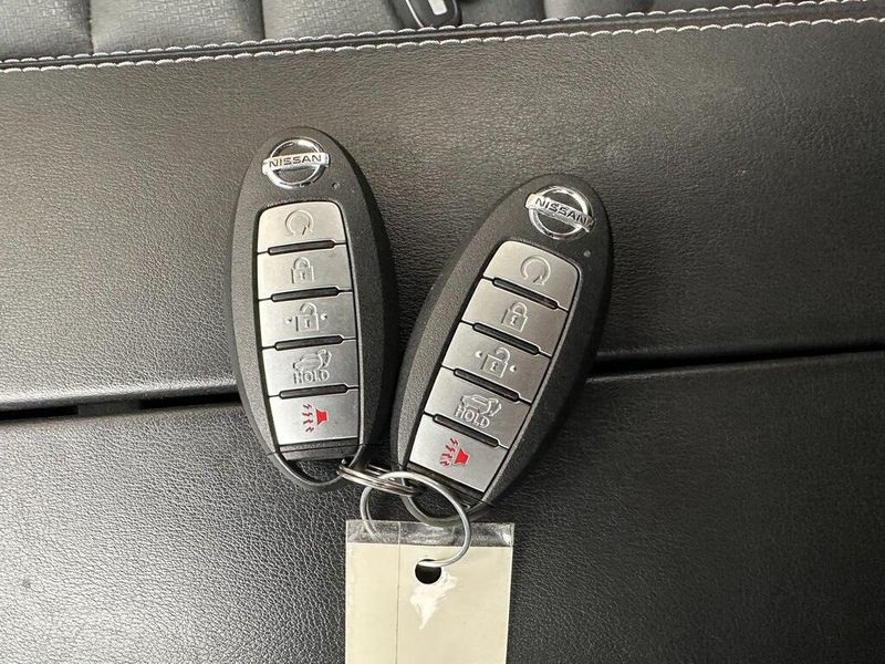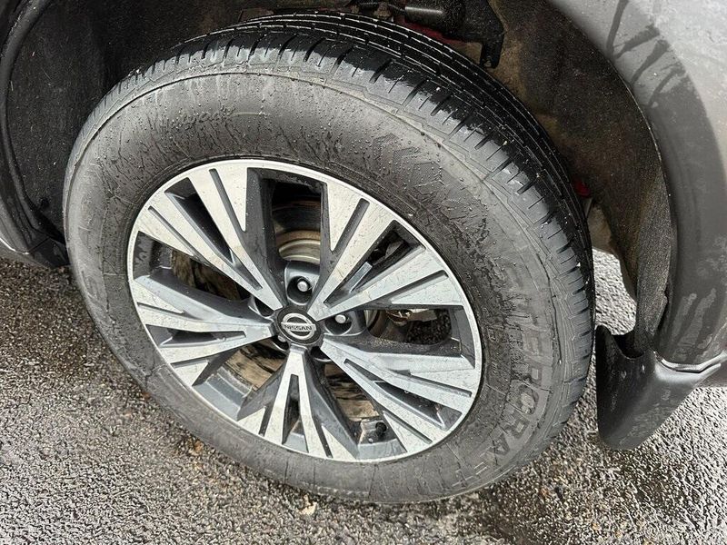 THIS VEHICLE INCLUDES THE FOLLOWING OPTIONS AND FEATURES: Premium Package (Heated Driver & Front Passenger Seats, Heated Leather-Wrapped Steering Wheel, Leatherette Seat Trim, Power Liftgate, Power Panoramic Moonroof, Roof Rails, and Second Row Sunshades), 6 Speakers, Air Conditioning, AM/FM Radio, AM/FM radio, Power driver seat, Power steering, Power windows, Radio data system, Rear Parking Sensors, Remote keyless entry, Steering wheel mounted audio controls, 18'' Aluminum Alloy Wheels, 4-Wheel Disc Brakes, 5.604 Axle Ratio, ABS brakes, Alloy wheels, Auto High-beam Headlights, Automatic temperature control, Black Splash Guards (Set of 4), Brake assist, Bumpers: body-color, Chrome Rear Bumper Protector, Delay-off headlights, Driver door bin, Driver vanity mirror, Dual front impact airbags, Dual front side impact airbags, Electronic Stability Control, Emergency communication system: NissanConnect Services, First Aid Kit, Floor Mats w/1-Piece Cargo Area Protector, Four wheel independent suspension, Front anti-roll bar, Front Bucket Seats, Front Center Armrest, Front dual zone A/C, Front reading lights, Fully automatic headlights, Heated door mirrors, Illuminated entry, Knee airbag, Low tire pressure warning, NissanConnect featuring Apple CarPlay and Android Auto, Occupant sensing airbag, Outside temperature display, Overhead airbag, Overhead console, Panic alarm, Passenger door bin, Passenger vanity mirror, Power door mirrors, Rear anti-roll bar, Rear seat center armrest, Rear side impact airbag, Rear window defroster, Rear window wiper, Security system, Speed control, Speed-Sensitive Wipers, Split folding rear seat, Spoiler, Tachometer, Telescoping steering wheel, Tilt steering wheel, Traction control, Trip computer, Turn signal indicator mirrors, and Variably intermittent wipers.