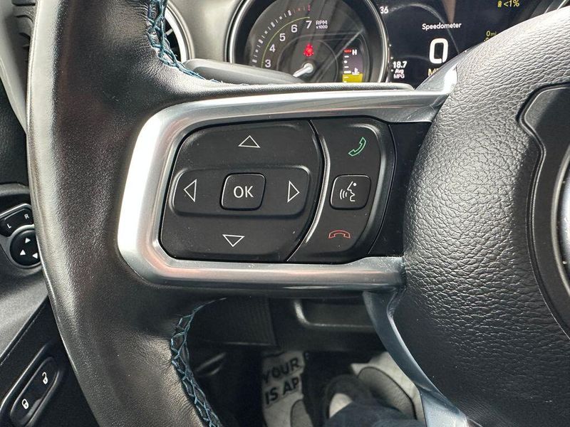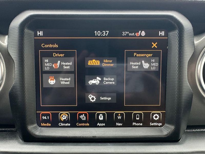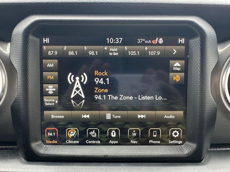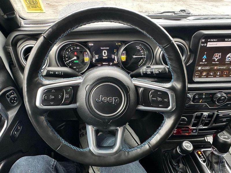 THIS VEHICLE INCLUDES THE FOLLOWING OPTIONS AND FEATURES: Cold Weather Group (Heated Front Seats, Heated Steering Wheel, and Remote Start System), Quick Order Package 29V, 9 Speakers, Air Conditioning, AM/FM radio: SiriusXM, Apple CarPlay/Android Auto, Black 3-Piece Hard Top, Freedom Panel Storage Bag, Front fog lights, Navigation System, No Soft Top, ParkView Rear Back-Up Camera, Power steering, Power windows, Premium Cloth Low-Back Bucket Seats, Radio data system, Radio: Uconnect 4C Nav w/8.4'' Display, Rear Window Defroster, Rear Window Wiper/Washer, Remote keyless entry, Steering wheel mounted audio controls, 4-Wheel Disc Brakes, 4.10 Rear Axle Ratio, ABS brakes, Alloy wheels, Auto-dimming Rear-View mirror, Automatic temperature control, Brake assist, Compass, Corning Gorilla Glass, Delay-off headlights, Driver door bin, Driver vanity mirror, Dual front impact airbags, Dual front side impact airbags, Electronic Stability Control, Emergency communication system: SiriusXM Guardian, Front anti-roll bar, Front Bucket Seats, Front Center Armrest w/Storage, Front dual zone A/C, Front License Plate Bracket, Front reading lights, Fully automatic headlights, Garage door transmitter, Heated door mirrors, Illuminated entry, Integrated roll-over protection, Leather steering wheel, Low tire pressure warning, MOPAR All-Weather Floor Mats, MOPAR Hardtop Headliner, Occupant sensing airbag, Outside temperature display, Panic alarm, Passenger door bin, Passenger vanity mirror, Performance Suspension, Power door mirrors, Rear anti-roll bar, Rear reading lights, Security system, Speed control, Split folding rear seat, Tachometer, Telescoping steering wheel, Tilt steering wheel, Traction control, Trip computer, Variably intermittent wipers, Voltmeter, and Wheels: 17'' x 7.5'' Machined/Painted Black.