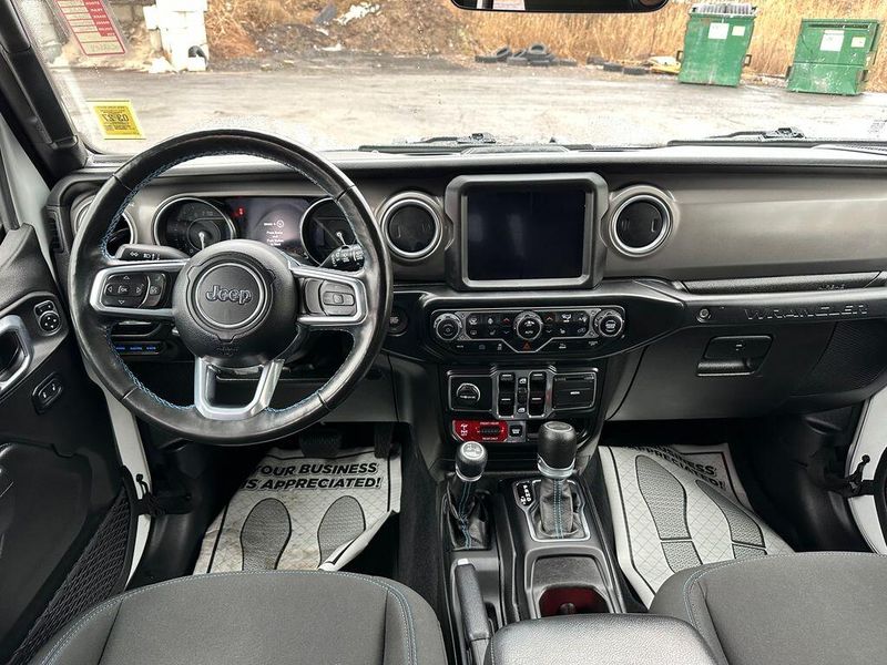 Certified. Bright White Clearcoat 2022 Jeep Wrangler Unlimited Rubicon 4xe 4WD 8-Speed Automatic 2.0L I4 DOHC Navigation, Bluetooth, Satellite Radio, Back Up Camera, One Owner, Passed Dealer Inspection, Fresh Detail, AutoCheck Vehicle History Reports with Buyback Protection, Fresh Oil Change, Remote Start, Heated Seats, 9 Speakers, Air Conditioning, AM/FM radio: SiriusXM, Apple CarPlay/Android Auto, Black 3-Piece Hard Top, Cold Weather Group, Freedom Panel Storage Bag, Front fog lights, Heated Front Seats, Heated Steering Wheel, Navigation System, No Soft Top, ParkView Rear Back-Up Camera, Power steering, Power windows, Premium Cloth Low-Back Bucket Seats, Quick Order Package 29V, Radio data system, Radio: Uconnect 4C Nav w/8.4'' Display, Rear Window Defroster, Rear Window Wiper/Washer, Remote keyless entry, Remote Start System, Steering wheel mounted audio controls. 90 DAY 3000 MILE WARRANTY, ROADSIDE ASSISTANCE, TOWING, 90 DAY SIRUSXM TRIAL.