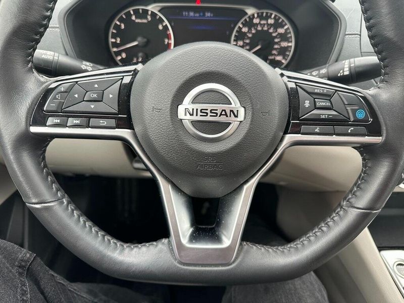 THIS VEHICLE INCLUDES THE FOLLOWING OPTIONS AND FEATURES: SV Premium Package (Electronic Parking Brake w/Auto-Hold, Exhaust Finishers, Heated Front Seats, Heated Outside Mirrors w/LED Turn Signal Indicators, Intelligent Lane Intervention (I-LI), Leather Shift Knob, Leather Steering Wheel, ProPILOT Assist, and Single Panel Moonroof), 6 Speakers, Air Conditioning, AM/FM radio: SiriusXM, NissanConnect featuring Apple CarPlay and Android Auto, Power driver seat, Power steering, Power windows, Radio data system, Radio: AM/FM Audio System, Rear Parking Sensors, Remote keyless entry, Steering wheel mounted audio controls, 17'' Machined Alloy Wheels, 4-Wheel Disc Brakes, ABS brakes, Alloy wheels, Auto High-beam Headlights, Blind Spot Warning, Body-Colored Splash Guards, Brake assist, Bumpers: body-color, Chrome Bumper Protector, Cloth Seat Trim, Delay-off headlights, Driver door bin, Driver vanity mirror, Dual front impact airbags, Dual front side impact airbags, Electronic Stability Control, Floor Mats/Trunk Mat/Hideaway Net, Four wheel independent suspension, Front anti-roll bar, Front Bucket Seats, Front Center Armrest, Front reading lights, Fully automatic headlights, Illuminated entry, Knee airbag, Low tire pressure warning, Occupant sensing airbag, Outside temperature display, Overhead airbag, Overhead console, Panic alarm, Passenger door bin, Passenger vanity mirror, Power door mirrors, Rear anti-roll bar, Rear reading lights, Rear seat center armrest, Rear side impact airbag, Rear window defroster, Security system, Speed control, Speed-sensing steering, Speed-Sensitive Wipers, Split folding rear seat, Sport steering wheel, Tachometer, Telescoping steering wheel, Tilt steering wheel, Traction control, Trip computer, Trunk Organizer Tray, and Variably intermittent wipers.