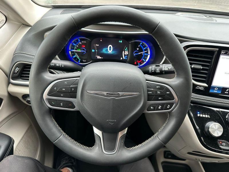 Experience the cutting-edge technology that sets this Pacifica Hybrid apart, including the expansive 10.1'' Uconnect 5 touchscreen display, Apple CarPlay, and Android Auto integration. Enjoy the convenience of the Power Liftgate, the comfort of the Heated Steering Wheel, and the peace of mind offered by the Integrated Active Noise Cancellation system.