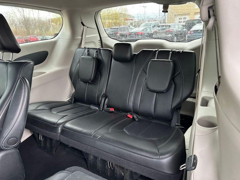 Safety is paramount in the Pacifica Hybrid, with a suite of advanced driver-assistance technologies, including Blind Spot Monitoring, Rear Cross-Traffic Alert, and Forward Collision Warning with Active Braking. Rest assured, your family's well-being is our top priority.