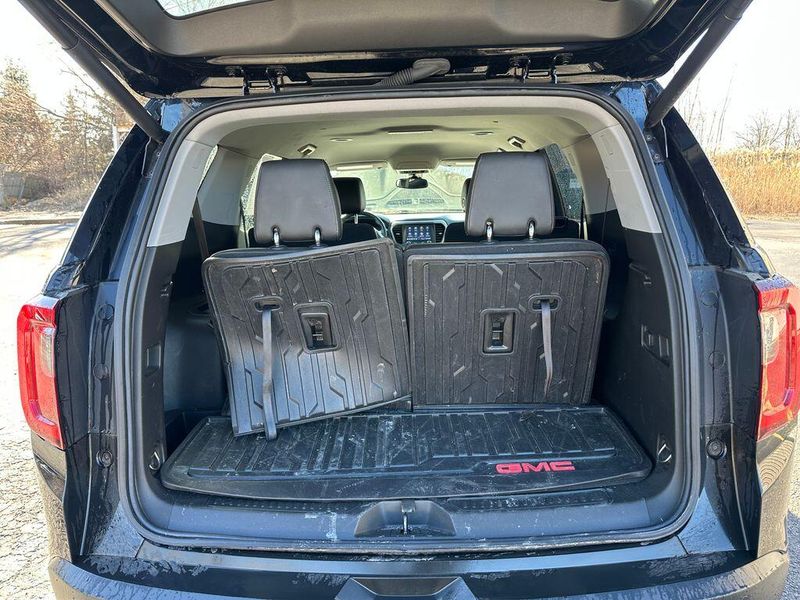 THIS VEHICLE INCLUDES THE FOLLOWING OPTIONS AND FEATURES: Floor Liner Package (LPO) (1st & 2nd Row All-Weather Floor Liner (LPO), 3rd Row All-Weather Floor Liner (LPO), and Integrated Cargo Liner (LPO)), Luxury Package (8-Way Power Passenger Seat Adjuster, Heated & Ventilated Driver & Front Passenger Seats, Heated Rear Outboard Seating Positions, Power Passenger Lumbar Control Seat Adjuster, Power Tilt & Telescopic Steering Column, and Power-Adjustable Body-Color Outside Heated Mirrors), Memory Package, Preferred Equipment Group 4SB, Preferred Package (Heated Steering Wheel), 3rd row seats: split-bench, 8 Speakers, 8-Way Power Driver Seat Adjuster, Air Conditioning, AM/FM radio: SiriusXM with 360L, Apple CarPlay/Android Auto, Bose Premium 8-Speaker Audio System Feature, Front fog lights, Heated Driver & Front Passenger Seats, Heated front seats, Navigation System, Power driver seat, Power Liftgate, Power steering, Power windows, Radio data system, Radio: AM/FM 8'' Diagonal Multi-Touch Navigation, Remote keyless entry, SiriusXM w/360L, Steering wheel mounted audio controls, Wireless Apple CarPlay/Wireless Android Auto, 3.49 Final Drive Axle Ratio, 4-Way Manual Passenger Seat Adjuster, 4-Wheel Disc Brakes, 6-Passenger (2-2-2 Seating Configuration), ABS brakes, Alloy wheels, Auto High-beam Headlights, Auto-dimming Rear-View mirror, Automatic temperature control, Brake assist, Bumpers: body-color, Compass, Delay-off headlights, Driver door bin, Driver vanity mirror, Dual front impact airbags, Dual front side impact airbags, Electronic Stability Control, Emergency communication system: OnStar and GMC connected services capable, Four wheel independent suspension, Front anti-roll bar, Front Bucket Seats, Front Center Armrest, Front dual zone A/C, Front License Plate Bracket, Front reading lights, Fully automatic headlights, Garage door transmitter, Heated door mirrors, Illuminated entry, Knee airbag, Low tire pressure warning, Occupant sensing airbag, Outside temperature display, Overhead airbag, Overhead console, Panic alarm, Passenger door bin, Passenger vanity mirror, Power door mirrors, Power Driver Lumbar Control Seat Adjuster, Premium Cloth Seat Trim, Rear air conditioning, Rear anti-roll bar, Rear reading lights, Rear window defroster, Rear window wiper, Roof rack: rails only, Security system, Speed control, Speed-sensing steering, Spoiler, Tachometer, Telescoping steering wheel, Tilt steering wheel, Traction control, Trip computer, Turn signal indicator mirrors, Variably intermittent w