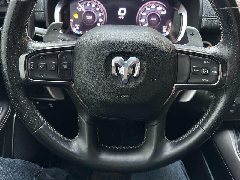THIS VEHICLE INCLUDES THE FOLLOWING OPTIONS AND FEATURES: G/T Package (3.92 Rear Axle Ratio, Exterior Mirrors w/Memory Settings, Floor Console, Front Door Accent Lighting, Front Heated Seats, Front Ventilated Seats, G/T Decal, GT Interior Theme, Leather Wrapped Shift Knob, Leather-Faced/Vinyl Bucket Seats, Leather-Wrapped Steering Wheel, MOPAR Bright Pedal Kit, MOPAR Cold Air Intake System, MOPAR Off-Road Truck Floor Mats, Passive Cold End Exhaust, Performance Pages, Power Adjustable Pedals w/Memory, Radio/Driver Seat/Mirrors/Pedals Memory, Rear Door Accent Lighting, Sport Performance Hood, Steering Wheel Mounted Shift Control, Twill Film Appliques, Under Seat Lighting, 4-Way Front Headrests, Bucket Seats, Front Seatback Map Pockets, Heated Steering Wheel, and Rear 60/40 Folding Seat), Rebel Level 1 Equipment Group (Power 8-Way Driver Seat), Rebel Level 2 Equipment Group (115V Rear Auxiliary Power Outlet, 2nd Row In-Floor Storage Bins, Media Hub w/2 USB Charging Ports, Park-Sense Front/Rear Park Assist w/Stop, Rain-Sensing Windshield Wipers, Rear Underseat Compartment Storage, Remote Start System, and Security Alarm), Trailer Tow Group (Black Exterior Mirrors, Exterior Mirrors w/Courtesy Lamps, Exterior Mirrors w/Turn Signals, Heated Exterior Mirrors, Mirror Clearance/Running Lights, Mirror-Mounted Aux Reverse Lamps, Power Folding Exterior Mirrors, Trailer Brake Control, Trailer Light Check, Trailer Reverse Steering Control, Trailer Tire Pressure Monitoring, and Trailer Tow Mirrors), 10 Speakers, ABS brakes, Air Conditioning, Alloy wheels, AM/FM radio: SiriusXM with 360L, Compass, Electronic Stability Control, Front dual zone A/C, Heated door mirrors, Heated front seats, Illuminated entry, Low tire pressure warning, Navigation System, ParkView Rear Bac