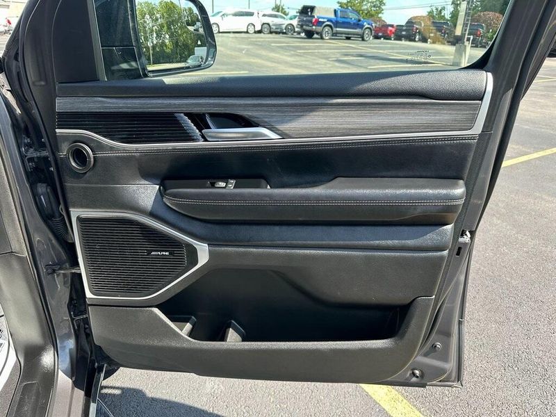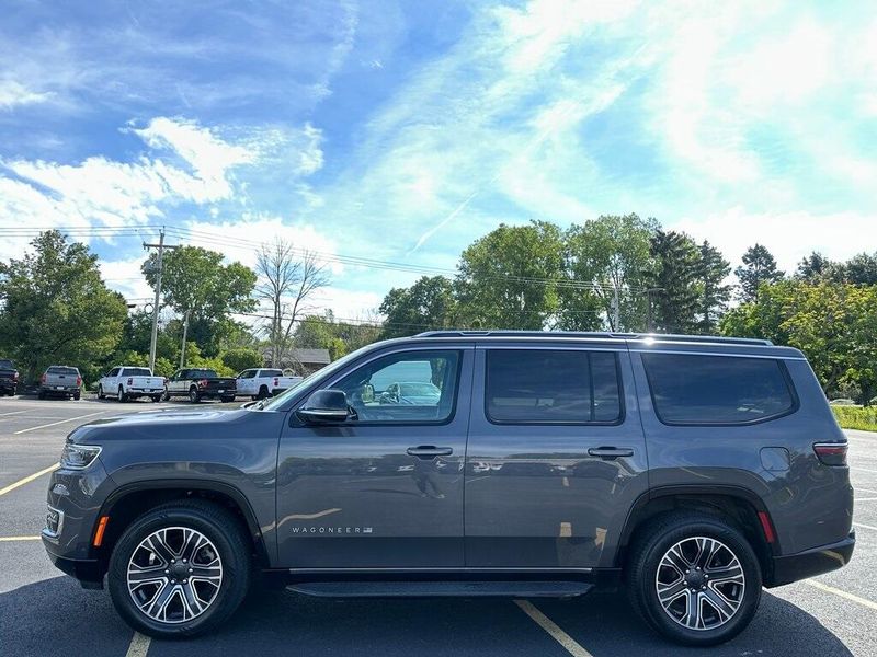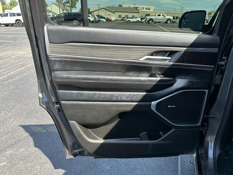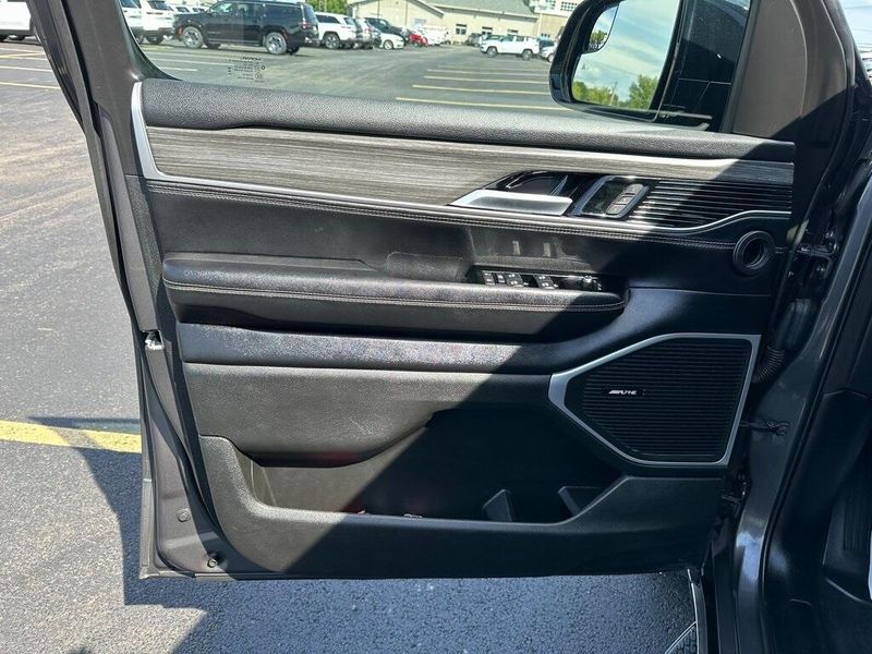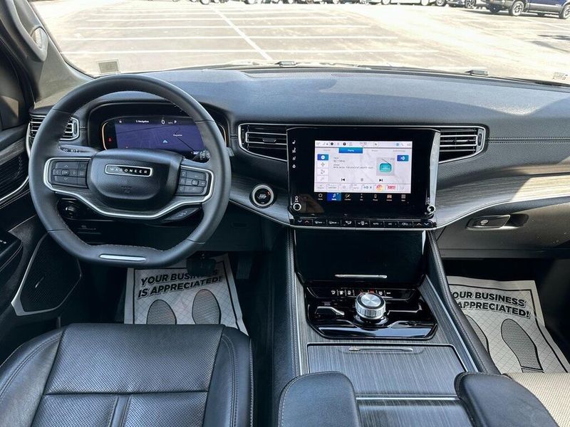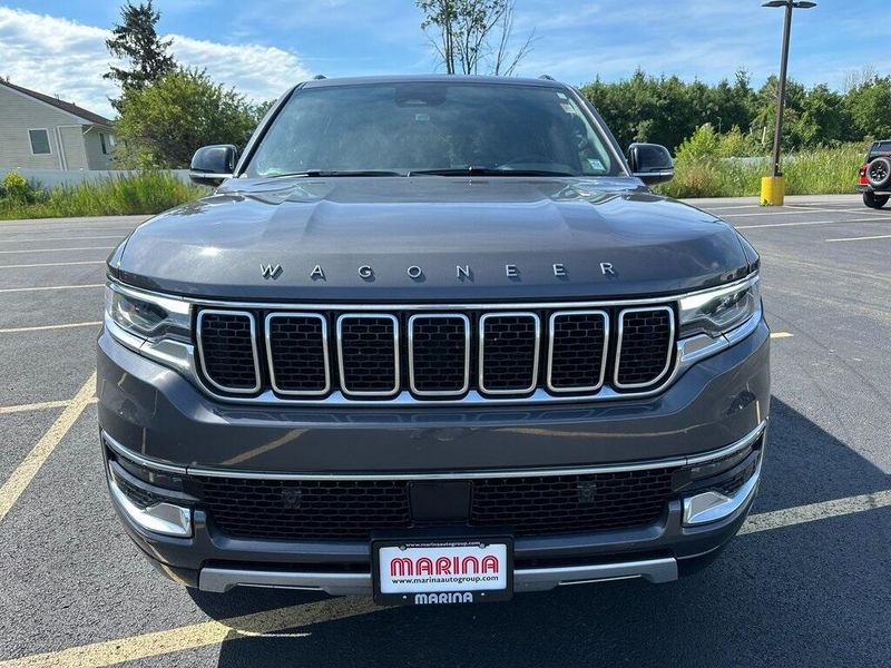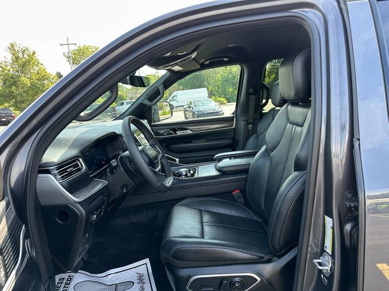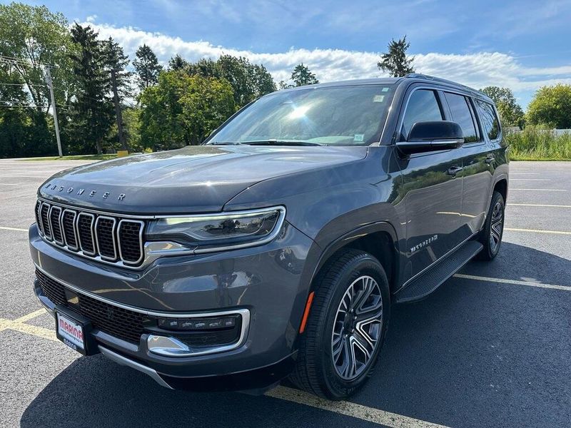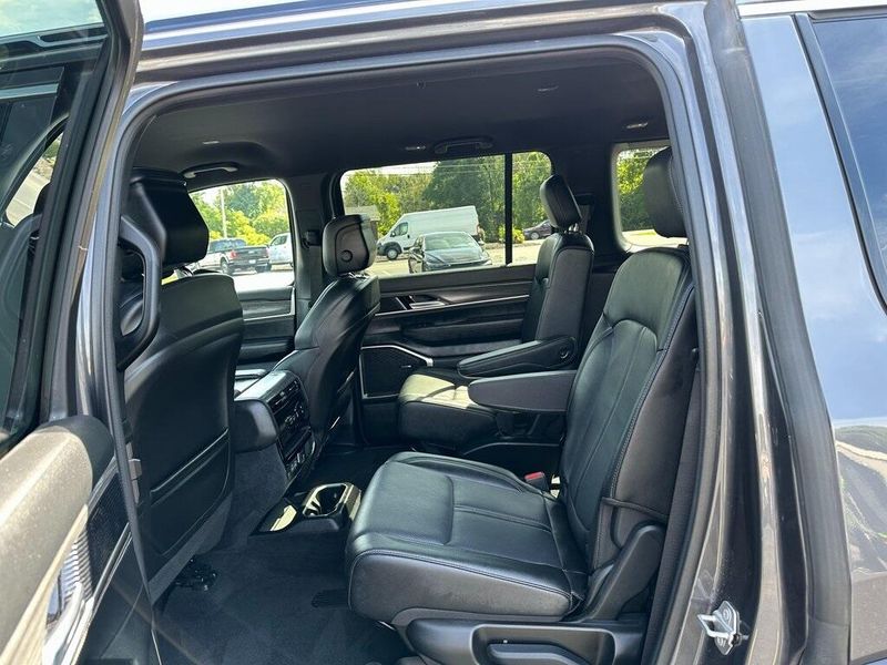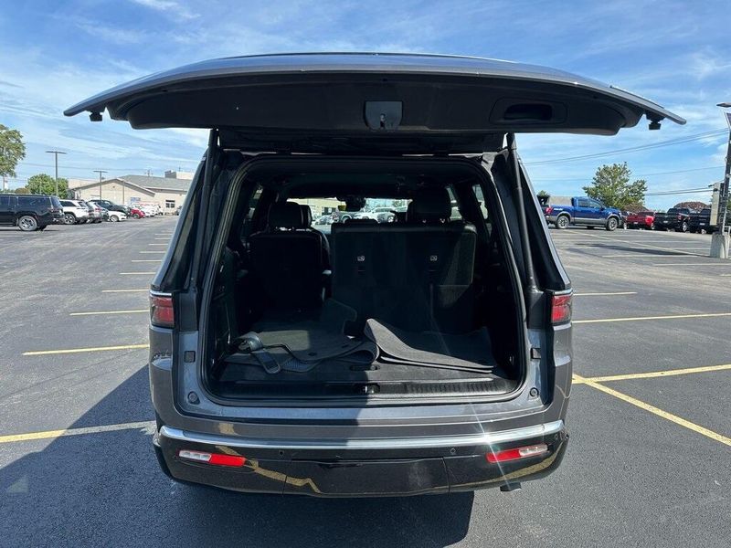 THIS VEHICLE INCLUDES THE FOLLOWING OPTIONS AND FEATURES: Quick Order Package 25J, 10 Speakers, Adjustable pedals, Air Conditioning, AM/FM radio: SiriusXM with 360L, Apple CarPlay/Android Auto, Audio memory, Exterior Parking Camera Rear, Front fog lights, Heated front seats, Heated rear seats, Heated steering wheel, Leather Trimmed Bucket Seats, Memory seat, Navigation System, Pedal memory, Power driver seat, Power Liftgate, Power passenger seat, Power steering, Power windows, Radio data system, Radio: Uconnect 5 Nav w/10.1'' Display, Remote keyless entry, Steering wheel memory, Steering wheel mounted audio controls, Ventilated front seats, 118 MPH Maximum Speed Calibration, 3.55 Rear Axle Ratio, 3rd row seats: bench, 4-Wheel Disc Brakes, ABS brakes, Alloy wheels, Anti-whiplash front head restraints, Auto-dimming door mirrors, Auto-dimming Rear-View mirror, Auto-leveling suspension, Automatic temperature control, Brake assist, Bumpers: body-color, Compass, Delay-off headlights, Driver door bin, Driver vanity mirror, Driver's Seat Mounted Armrest, Dual front impact airbags, Dual front side impact airbags, Electronic Stability Control, Emergency communication system: Wagoneer Connect, Four wheel independent suspension, Front anti-roll bar, Front Bucket Seats, Front Center Armrest w/Storage, Front dual zone A/C, Front reading lights, Fully automatic headlights, Garage door transmitter, Genuine wood console insert, Genuine wood dashboard insert, Genuine wood door panel insert, Heated door mirrors, Illuminated entry, Knee airbag, Low tire pressure warning, Normal Duty Suspension, Occupant sensing airbag, Outside temperature display, Overhead airbag, Overhead console, Panic alarm, Passenger door bin, Passenger seat mounted armrest, Passenger vanity mirror, Power adjustable front head restraints, Power door mirrors, Rain sensing wipers, Rear air conditioning, Rear anti-roll bar, Rear dual zone A/C, Rear reading lights, Rear seat center armrest, Rear window defroster, Rear window wiper, Reclining 3rd row seat, Security system, Speed control, Speed-sensing steering, Speed-Sensitive Wipers, Split folding rear seat, Tachometer, Telescoping steering wheel, Tilt steering wheel, Traction control, Trip computer, Turn signal indicator mirrors, Variably intermittent wipers, Voltmeter, and Wheels: 20'' x 9.0'' Premium 2 Aluminum.