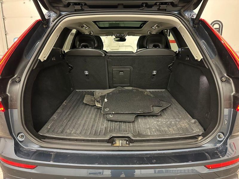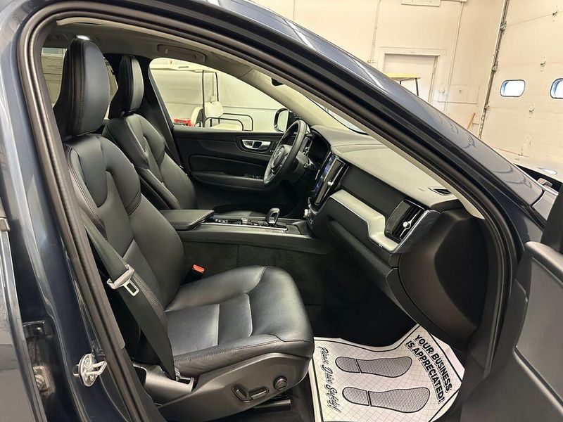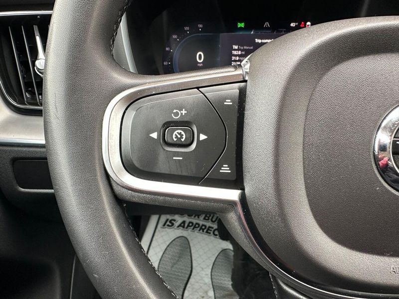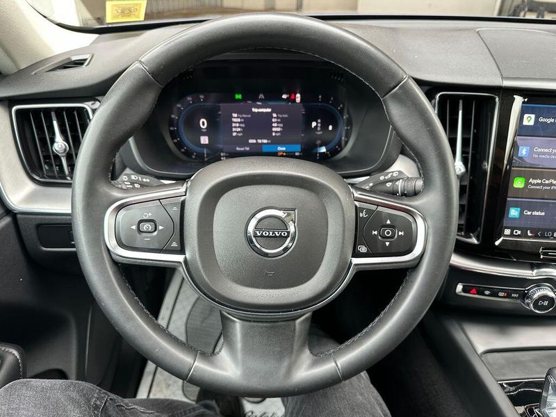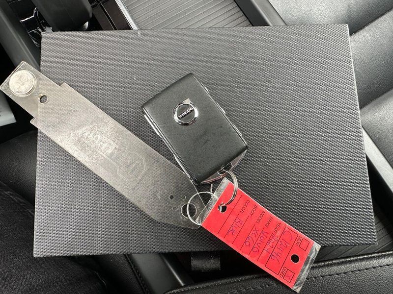 THIS VEHICLE INCLUDES THE FOLLOWING OPTIONS AND FEATURES: 10 Speakers, Air Conditioning, AM/FM radio: SiriusXM, Apple CarPlay, Exterior Parking Camera Rear, Front fog lights, Heated Front Bucket Seats, Heated front seats, Leatherette Upholstery, Memory seat, Power driver seat, Power moonroof, Power steering, Power windows, Radio data system, Radio: High Performance Audio System, Remote keyless entry, Steering wheel mounted audio controls, Wheels: 18'' 5-Double Spoke Black Diamond Cut Alloy, 4-Wheel Disc Brakes, ABS brakes, Alloy wheels, Anti-whiplash front head restraints, Auto High-beam Headlights, Auto-dimming door mirrors, Auto-dimming Rear-View mirror, Automatic temperature control, Brake assist, Bumpers: body-color, Delay-off headlights, Driver door bin, Driver vanity mirror, Dual front impact airbags, Dual front side impact airbags, Electronic Stability Control, Emergency communication system: Volvo Cars App w/4 Year Subscription, Four wheel independent suspension, Front anti-roll bar, Front Bucket Seats, Front Center Armrest, Front dual zone A/C, Front reading lights, Fully automatic headlights, Heated door mirrors, Illuminated entry, Knee airbag, Leather Shift Knob, Low tire pressure warning, Occupant sensing airbag, Outside temperature display, Overhead airbag, Panic alarm, Passenger door bin, Passenger vanity mirror, Power door mirrors, Power passenger seat, Rain sensing wipers, Rear anti-roll bar, Rear fog lights, Rear reading lights, Rear seat center armrest, Rear window defroster, Rear window wiper, Security system, Speed control, Split folding rear seat, Spoiler, Tachometer, Telescoping steering wheel, Tilt steering wheel, Traction control, Trip computer, Turn signal indicator mirrors, and Variably intermittent wipers.