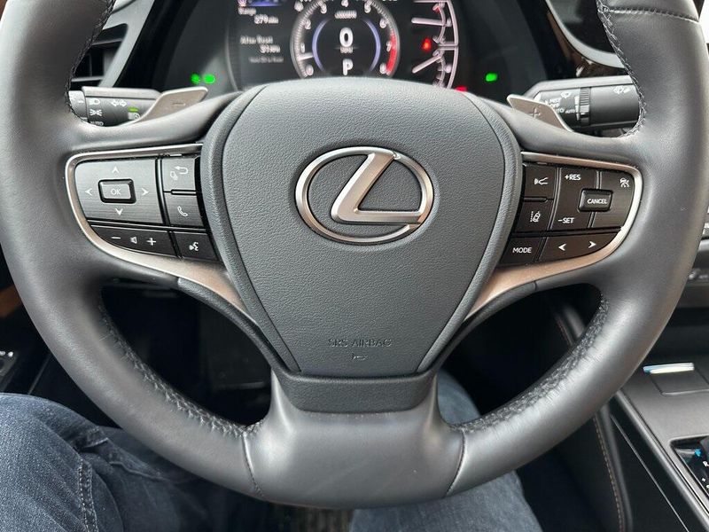 THIS VEHICLE INCLUDES THE FOLLOWING OPTIONS AND FEATURES: 10 Speakers, Air Conditioning, AM/FM radio: SiriusXM, Exterior Parking Camera Rear, Front Power Seats, Heated & Ventilated Seats, Navigation system: Drive Connect Cloud Navigation (subscription required), Power driver seat, Power moonroof, Power steering, Power windows, Radio data system, Radio: Lexus Interface w/8'' Touch Screen, Remote keyless entry, Steering wheel mounted audio controls, 4-Wheel Disc Brakes, ABS brakes, Alloy wheels, Auto High-beam Headlights, Auto-dimming door mirrors, Auto-dimming Rear-View mirror, Automatic temperature control, Brake assist, Bumpers: body-color, Compass, Delay-off headlights, Driver door bin, Driver vanity mirror, Dual front impact airbags, Dual front side impact airbags, Electronic Stability Control, Emergency communication system, Four wheel independent suspension, Front anti-roll bar, Front Bucket Seats, Front Center Armrest, Front dual zone A/C, Front reading lights, Fully automatic headlights, Garage door transmitter: HomeLink, Heated door mirrors, Illuminated entry, Knee airbag, Leather Shift Knob, Leather steering wheel, Low tire pressure warning, Occupant sensing airbag, Outside temperature display, Overhead airbag, Overhead console, Panic alarm, Passenger door bin, Passenger vanity mirror, Perforated NuLuxe Seat Trim, Power door mirrors, Power passenger seat, Rear anti-roll bar, Rear reading lights, Rear seat center armrest, Rear side impact airbag, Rear window defroster, Security system, Speed control, Speed-sensing steering, Tachometer, Telescoping steering wheel, Tilt steering wheel, Traction control, Trip computer, Turn signal indicator mirrors, Variably intermittent wipers, Wheels: 17'' Twin-V-Spoke Alloy, Wheels: 18'' Split-10-Spoke Two-Tone Alloy, and Wireless Apple CarPlay/Wireless Android Auto.