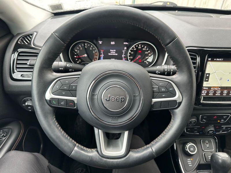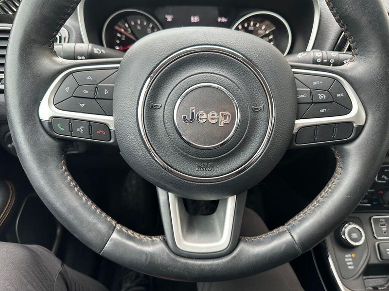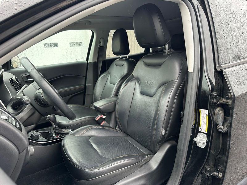 Certified. Diamond Black Crystal Pearlcoat 2018 Jeep Compass Limited 4WD 9-Speed Automatic 2.4L I4 Navigation, Sunroof, Leather, Bluetooth, Satellite Radio, Back Up Camera, AutoCheck Vehicle History Reports with Buyback Protection, Remote Start, Heated Seats, Clean Carfax, 6 Speakers, Advanced Safety & Lighting Group, Air Conditioning, AM/FM radio: SiriusXM, Apple CarPlay/Android Auto, Auto High Beam Headlamp Control, Bi-Xenon HID Headlamps w/LED Signature, Blind Spot & Cross Path Detection, Front fog lights, Full Speed FWD Collision Warn Plus, GPS Navigation, Heated front seats, Lane Departure Warning Plus, Leather Trimmed Bucket Seats, LED Taillamps, Navigation Group, ParkSense Rear Park Assist System, Power driver seat, Power Front/Fixed Rear Full Sunroof, Power steering, Power windows, Quick Order Package 27G, Radio: Uconnect 4 w/8.4'' Display, Radio: Uconnect 4C Nav w/8.4'' Display, Rain Sensitive/Intermittent Wipers, Remote keyless entry, Safe & Security Group, Steering wheel mounted audio controls. 90 DAY 3000 MILE WARRANTY, ROADSIDE ASSISTANCE, TOWING, 90 DAY SIRUSXM TRIAL.