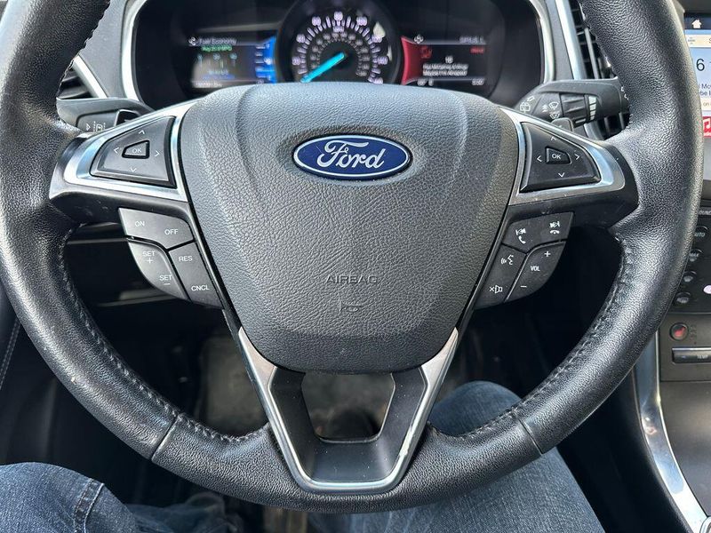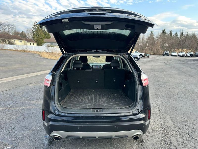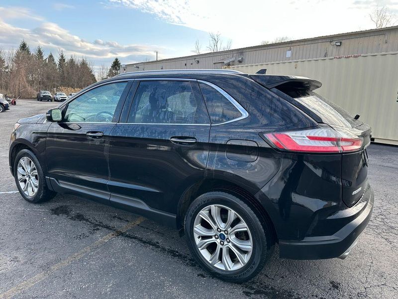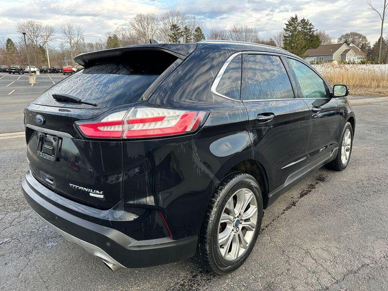 Certified. Agate Black Metallic 2019 Ford Edge Titanium AWD 8-Speed Automatic EcoBoost 2.0L I4 GTDi DOHC Turbocharged VCT Leather, Bluetooth, Satellite Radio, Back Up Camera, AutoCheck Vehicle History Reports with Buyback Protection, Remote Start, Heated Seats, Clean Carfax, 12 Speakers, Air Conditioning, AM/FM radio: SiriusXM, AppLink/Apple CarPlay and Android Auto, CD player, Front fog lights, Heated front seats, Memory seat, Power driver seat, Power Liftgate, Power passenger seat, Power steering, Power windows, Radio: B&O Sound System by Bang & Olufsen, Rear Parking Sensors, Remote keyless entry, SiriusXM Radio, Steering wheel memory, Steering wheel mounted audio controls, SYNC 3 Communications & Entertainment System. 90 DAY 3000 MILE WARRANTY, ROADSIDE ASSISTANCE, TOWING, 90 DAY SIRUSXM TRIAL.