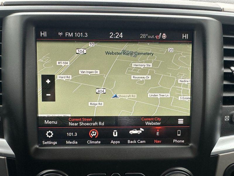 Certified. Bright White Clearcoat 2019 Ram 1500 Classic Big Horn 4WD 8-Speed Automatic HEMI 5.7L V8 Multi Displacement VVT Navigation, Sunroof, Bluetooth, Satellite Radio, Back Up Camera, Passed Dealer Inspection, Fresh Detail, AutoCheck Vehicle History Reports with Buyback Protection, Fresh Oil Change, Remote Start, Tow Package, Heated Seats, 6 Speakers, Air Conditioning, AM/FM radio: SiriusXM, Apple CarPlay, Auto-Dimming Exterior Mirrors, Auto-Dimming Rear-View Mirror, Big Horn Badge, Big Horn Regional Package, Bright/Bright Billets Grille, Class IV Receiver Hitch, Cloth 40/20/40 Premium Bench Seat, Cluster 7.0'' TFT Color Display, Dual Rear Exhaust w/Bright Tips, Electric Shift-On-Demand Transfer Case, Exterior Mirrors Courtesy Lamps, Exterior Mirrors w/Supplemental Signals, Front Fog Lamps, Glove Box Lamp, GPS Antenna Input, GPS Navigation, HD Radio, Heated Front Seats, Heated Seats & Wheel Group, Heated Steering Wheel, Leather Wrapped Steering Wheel, LED Bed Lighting, Overhead Console w/Garage Door Opener, ParkSense Ft/Rr Park Assist System, ParkView Rear Back-Up Camera, Power 10-Way Driver Seat, Power Heated Fold-Away Mirrors, Power Lumbar Adjust, Power steering, Power Sunroof, Power windows, Power-Folding Mirrors, Premium Cloth Bucket Seats, Quick Order Package 27S Big Horn, Radio data system, Radio: Uconnect 4C Nav w/8.4'' Display, Radio: Uconnect 4C w/8.4'' Display, RamBox Cargo Management System, RamBox Value Package, Rear 60/40 Split Folding Seat, Rear Dome w/On/Off Switch Lamp, Rear Floor Mats, Rear Power Sliding Window, Remote keyless entry, Remote Start System, Security Alarm, SiriusXM Satellite Radio, Spray In Bedliner, Steering Wheel Mounted Audio Controls, Sun Visors w/Illuminated Vanity Mirrors, Universal Garage Door Opener, Wheels: 20'' x 8'' Aluminum Chrome Clad. 90 DAY 3000 MILE WARRANTY, ROADSIDE ASSISTANCE, TOWING, 90 DAY SIRUSXM TRIAL.