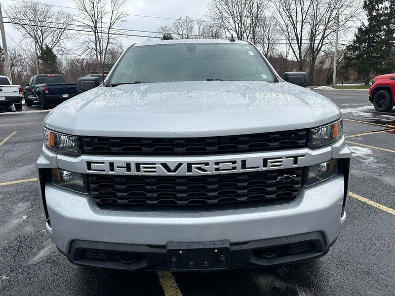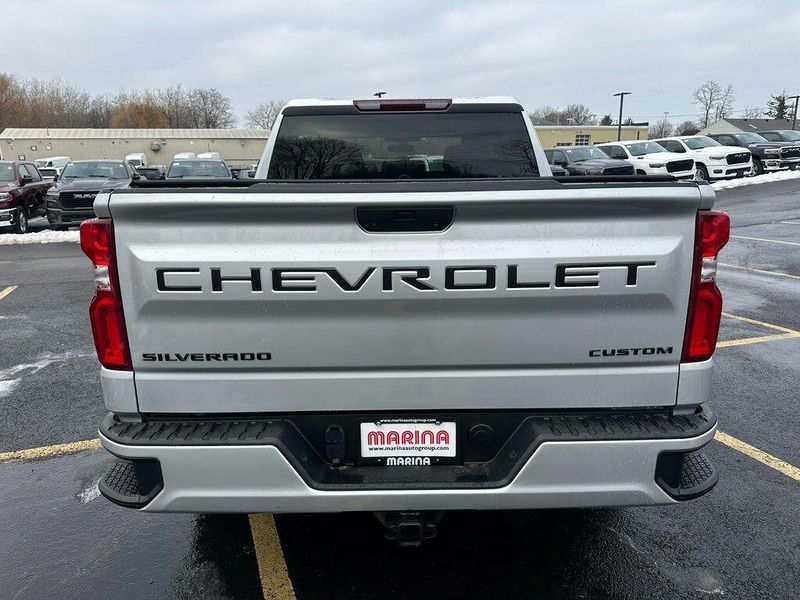 Certified. Silver Ice Metallic 2021 Chevrolet Silverado 1500 Custom 4WD 8-Speed Automatic 2.7L Turbo Bluetooth, Satellite Radio, Back Up Camera, One Owner, Passed Dealer Inspection, Fresh Detail, AutoCheck Vehicle History Reports with Buyback Protection, Fresh Oil Change, Remote Start, Tow Package, Clean Carfax, 170 Amp Alternator, 3.5'' Diagonal Monochromatic Display, 6 Speakers, Air Conditioning, AM/FM radio: SiriusXM, Apple CarPlay/Android Auto, Assist Step & Tonneau Value Package I (LPO) (DISC), Black Name Plates (LPO), Black Work Step (LPO) (DISC), Bluetooth For Phone, Body Color Grille, Color-Keyed Carpeting Floor Covering, Compass, Custom Convenience Package, Custom Value Package, Dark Essentials Package (LPO), Deep-Tinted Glass, Electric Rear-Window Defogger, Electronic Cruise Control, EZ Lift Power Lock & Release Tailgate, Front Frame-Mounted Black Recovery Hooks, Front Rubberized Vinyl Floor Mats, Infotainment Package, LED Cargo Area Lighting, Manual Tilt Wheel Steering Column, Power Door Locks, Power Front Windows w/Driver Express Up/Down, Power Front Windows w/Passenger Express Down, Power Rear Windows w/Express Down, Preferred Equipment Group 1CX, Premium audio system: Chevrolet Infotainment 3, Premium Soft Roll-Up Tonneau Cover (LPO), Radio data system, Radio: Chevrolet Infotainment 3 System, Rear 60/40 Folding Bench Seat (Folds Up), Rear Rubberized-Vinyl Floor Mats, Remote Keyless Entry, Remote Vehicle Starter System, SiriusXM Radio, Standard Tailgate, Trailering Package. 90 DAY 3000 MILE WARRANTY, ROADSIDE ASSISTANCE, TOWING, 90 DAY SIRUSXM TRIAL.