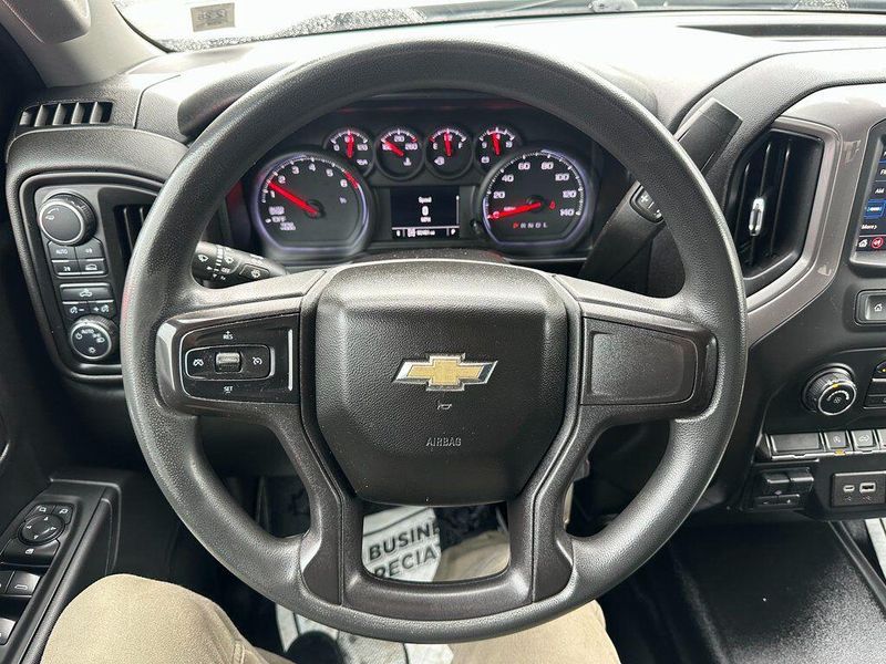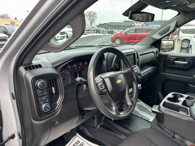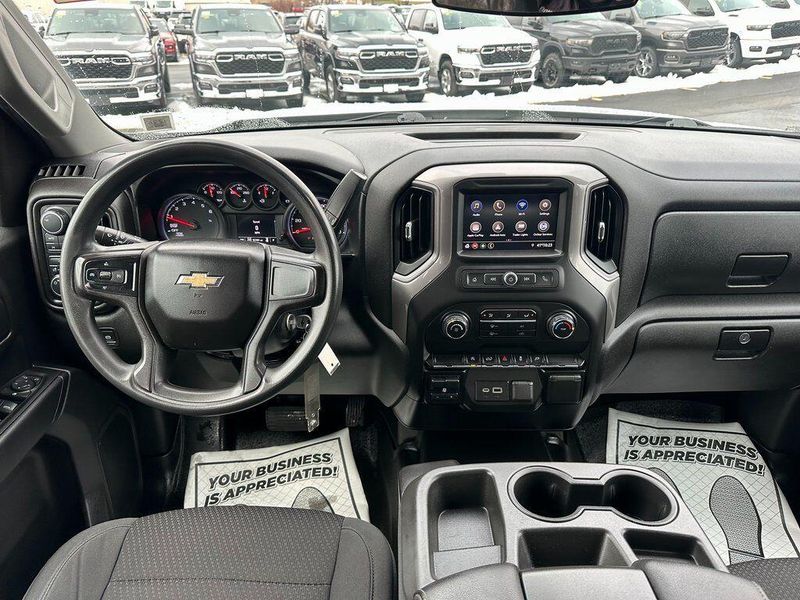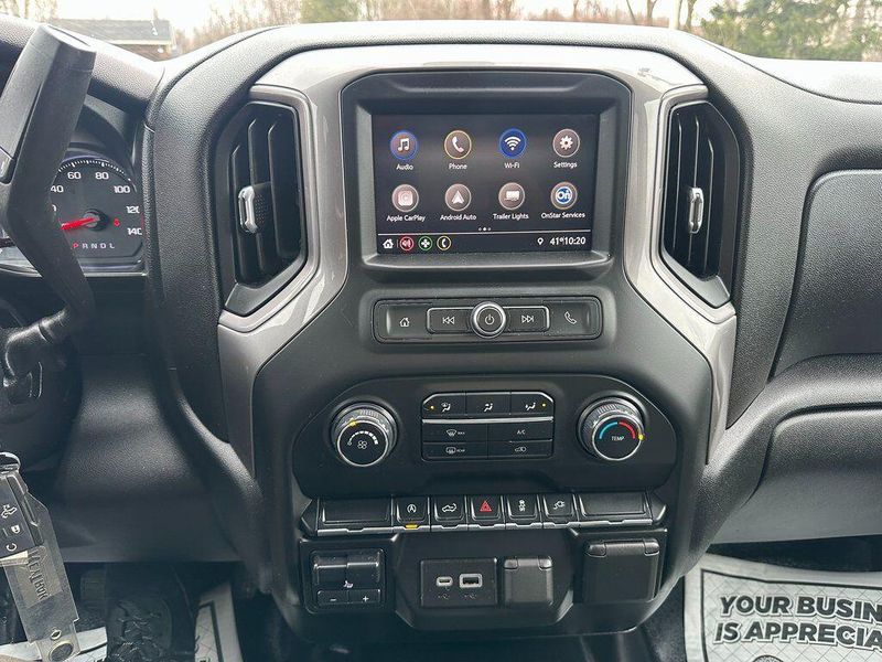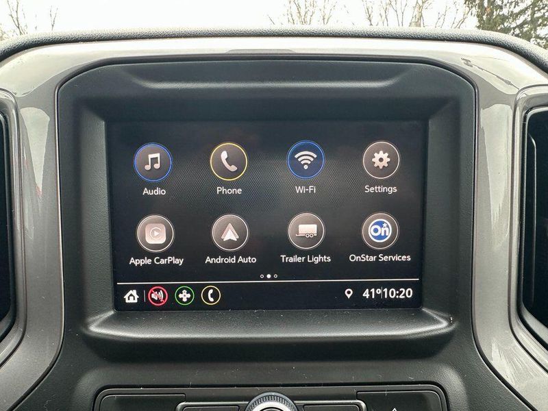 THIS VEHICLE INCLUDES THE FOLLOWING OPTIONS AND FEATURES: Assist Step & Tonneau Value Package I (LPO) (DISC) (Black Work Step (LPO) (DISC) and Premium Soft Roll-Up Tonneau Cover (LPO)), Custom Convenience Package (Electric Rear-Window Defogger, EZ Lift Power Lock & Release Tailgate, LED Cargo Area Lighting, Remote Vehicle Starter System, and Theft Deterrent System (Unauthorized Entry)), Custom Value Package, Dark Essentials Package (LPO) (Black Name Plates (LPO)), Infotainment Package (SiriusXM Radio, 4G LTE Wi-Fi Hot Spot Capable, Chevrolet Connected Access Capable, and OnStar & Chevrolet Connected Services Capable), Preferred Equipment Group 1CX (170 Amp Alternator, 3.5'' Diagonal Monochromatic Display, Bluetooth For Phone, Body Color Grille, Color-Keyed Carpeting Floor Covering, Compass, Deep-Tinted Glass, Electronic Cruise Control, Front Frame-Mounted Black Recovery Hooks, Front Rubberized Vinyl Floor Mats, Manual Tilt Wheel Steering Column, Power Door Locks, Power Front Windows w/Driver Express Up/Down, Power Front Windows w/Passenger Express Down, Power Rear Windows w/Express Down, Rear 60/40 Folding Bench Seat (Folds Up), Rear Rubberized-Vinyl Floor Mats, Remote Keyless Entry, and Standard Tailgate), Trailering Package (Hitch Guidance), 6 Speakers, Air Conditioning, AM/FM radio: SiriusXM, Apple CarPlay/Android Auto, Premium audio system: Chevrolet Infotainment 3, Radio data system, Radio: Chevrolet Infotainment 3 System, 120-Volt Bed Mounted Power Outlet, 120-Volt Instrument Panel Power Outlet, 220 Amp Alternator, 3.42 Rear Axle Ratio, 4-Wheel Disc Brakes, 40/20/40 Front Split Bench Seat, ABS brakes, Alloy wheels, Auto-Locking Rear Differential, Automatic Stop/Start, Black Tailgate CHEVROLET Lettering (LPO), Brake assist, Bumpers: body-color, Cloth Seat Trim, Delay-off headlights, Driver door bin, Driver vanity mirror, Dual front impact airbags, Dual front side impact airbags, Electronic Stability Control, Front anti-roll bar, Front Black Bowtie Emblem (LPO), Front Center Armrest w/Storage, Front License Plate Kit, Front reading lights, Front wheel independent suspension, Fully automatic headlights, Heated door mirrors, Heavy Duty Suspension, Illuminated entry, Integrated Trailer Brake Controller, Low tire pressure warning, Molded Black Splash Guards (LPO), Occupant sensing airbag, Outside temperature display, Overhead airbag, Overhead console, P