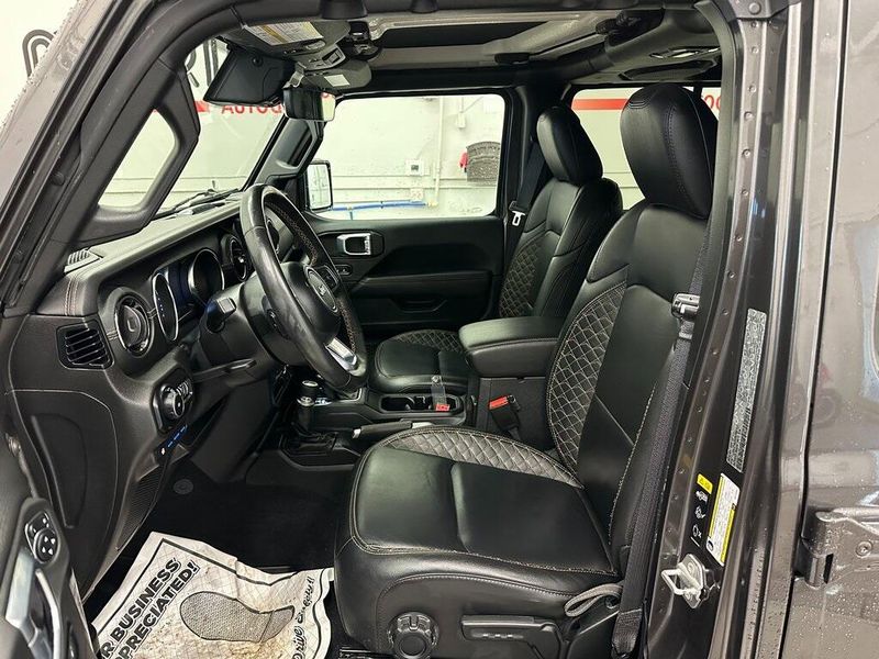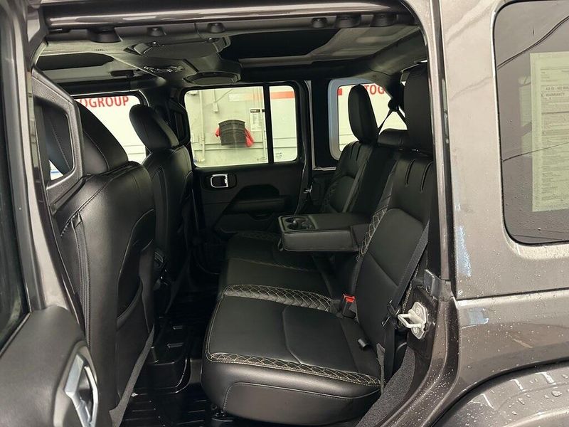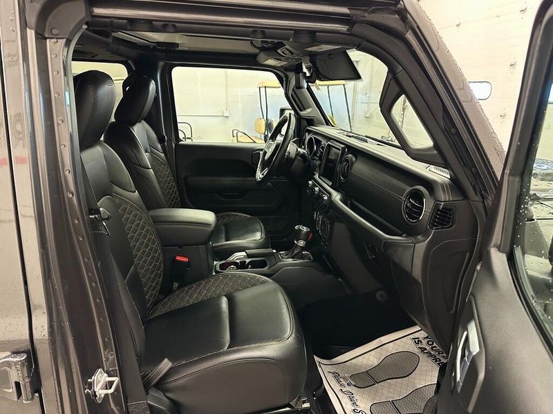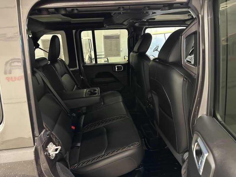 THIS VEHICLE INCLUDES THE FOLLOWING OPTIONS AND FEATURES: Advanced Safety Group (Adaptive Cruise Control w/Stop, Advanced Brake Assist, Auto High Beam Headlamp Control, and Full Speed Forward Collision Warning Plus), Cold Weather Group (Heated Front Seats, Heated Steering Wheel, and Remote Start System), High Altitude Package, Quick Order Package 29N High Altitude (Blue Tow Hooks, Body Color 3-Piece Hard Top, Body Color Door Handles, Body Color Exterior Mirrors, Body Color Front Bumper, Body Color Grille w/Gloss Black Rings, Body Color Power Locking Fuel Filler Door, Body Color Rear Bumper w/Step Pads, Caramel Interior Accents, Leather Trimmed Bucket Seats, Leather Wrapped Park Brake Handle, Premium Dark Exterior Accents, Remote Proximity Keyless Entry, Summit Badging, Wrapped I/P Bezel w/Caramel Stitch, Freedom Panel Storage Bag, Rear Window Defroster, and Rear Window Wiper/Washer), Safety Group (ParkSense Rear Park Assist System and Blind Spot & Cross Path Detection), Trailer Tow & HD Electrical Group (7 & 4 Pin Wiring Harness, 700 Amp Maintenance Free Battery, Auxiliary Switches, and Class II Receiver Hitch), 9 Speakers, Air Conditioning, AM/FM radio, Apple CarPlay/Android Auto, Front fog lights, Navigation System, ParkView Rear Back-Up Camera, Power steering, Power windows, Radio data system, Radio: Uconnect 4C Nav w/8.4'' Display, Remote keyless entry, Steering wheel mounted audio controls, 3.73 Rear Axle Ratio, 4-Wheel Disc Brakes, ABS brakes, Alloy wheels, Auto-dimming Rear-View mirror, Automatic temperature control, Brake assist, Compass, Delay-off headlights, Driver door bin, Driver vanity mirror, Dual front impact airbags, Dual front side impact airbags, Electronic Stability Control, Emergency communication system: SiriusXM Guardian, Front anti-roll bar, Front Bucket Seats, Front Center Armrest w/Storage, Front dual zone A/C, Front License Plate Bracket, Front reading lights, Fully automatic headlights, Garage door transmitter, Heated door mirrors, Illuminated entry, Integrated roll-over protection, Leather Shift Knob, Leather steering wheel, Leather Trimmed Seats w/Sahara Logo, Low tire pressure warning, Manufacturer's Statement of Origin, MOPAR Hardtop Headliner, Occupant sensing airbag, Outside temperature display, Panic