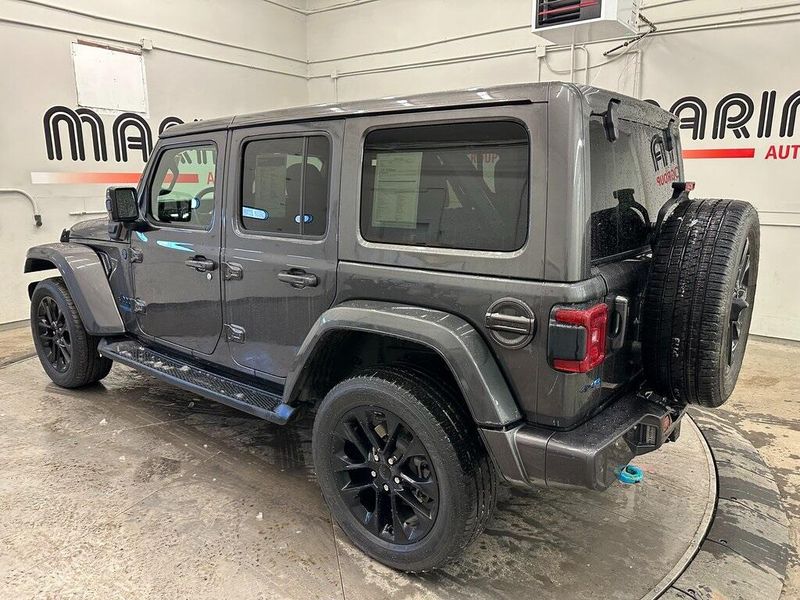 Certified. Granite Crystal Metallic Clearcoat 2021 Jeep Wrangler Unlimited Sahara High Altitude 4xe 4WD 8-Speed Automatic 2.0L I4 DOHC Navigation, Leather, Bluetooth, Satellite Radio, Back Up Camera, Passed Dealer Inspection, Fresh Detail, AutoCheck Vehicle History Reports with Buyback Protection, Fresh Oil Change, Remote Start, Tow Package, Heated Seats, 7 & 4 Pin Wiring Harness, 700 Amp Maintenance Free Battery, 9 Speakers, Adaptive Cruise Control w/Stop, Advanced Brake Assist, Advanced Safety Group, Air Conditioning, AM/FM radio, Apple CarPlay/Android Auto, Auto High Beam Headlamp Control, Auxiliary Switches, Blue Tow Hooks, Body Color 3-Piece Hard Top, Body Color Door Handles, Body Color Exterior Mirrors, Body Color Front Bumper, Body Color Grille w/Gloss Black Rings, Body Color Power Locking Fuel Filler Door, Body Color Rear Bumper w/Step Pads, Caramel Interior Accents, Class II Receiver Hitch, Cold Weather Group, Front fog lights, Full Speed Forward Collision Warning Plus, Heated Front Seats, Heated Steering Wheel, High Altitude Package, Leather Trimmed Bucket Seats, Leather Wrapped Park Brake Handle, Navigation System, ParkSense Rear Park Assist System, ParkView Rear Back-Up Camera, Power steering, Power windows, Premium Dark Exterior Accents, Quick Order Package 29N High Altitude, Radio data system, Radio: Uconnect 4C Nav w/8.4'' Display, Remote keyless entry, Remote Proximity Keyless Entry, Remote Start System, Safety Group, Steering wheel mounted audio controls, Summit Badging, Trailer Tow & HD Electrical Group, Wrapped I/P Bezel w/Caramel Stitch. 90 DAY 3000 MILE WARRANTY, ROADSIDE ASSISTANCE, TOWING, 90 DAY SIRUSXM TRIAL.