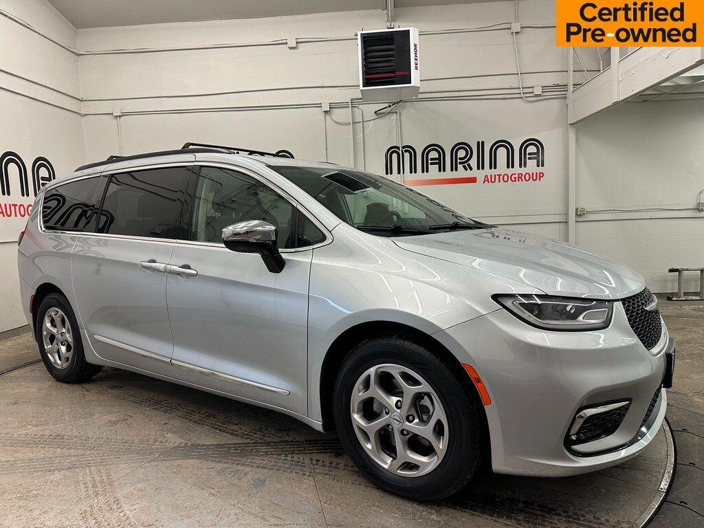 Certified. Silver Mist Clearcoat 2023 Chrysler Pacifica Limited FWD 9-Speed 948TE Automatic 3.6L V6 24V VVT Navigation, Sunroof, Leather, Bluetooth, Satellite Radio, Back Up Camera, One Owner, Passed Dealer Inspection, Fresh Detail, AutoCheck Vehicle History Reports with Buyback Protection, Fresh Oil Change, Remote Start, Heated Seats, Clean Carfax, 13 Speakers, Air Conditioning, AM/FM radio: SiriusXM 360L, Apple CarPlay/Android Auto, Audio memory, Front fog lights, Heated front seats, Heated rear seats, Integrated Active Noise Cancellation, Memory seat, Navigation System, ParkView Rear Back-Up Camera, Power driver seat, Power Folding 3rd Row Seat, Power Liftgate, Power moonroof, Power passenger seat, Power steering, Power windows, Quick Order Package 27P, Radio data system, Radio: Uconnect 5 Nav w/10.1'' Display, Remote keyless entry, Roof rack, Steering wheel mounted audio controls, Ventilated front seats. 90 DAY 3000 MILE WARRANTY, ROADSIDE ASSISTANCE, TOWING, 90 DAY SIRUSXM TRIAL.
