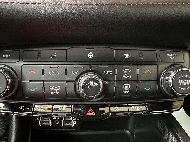 THIS VEHICLE INCLUDES THE FOLLOWING OPTIONS AND FEATURES: Quick Order Package 2BD GT, 6 Speakers, Air Conditioning, AM/FM radio: SiriusXM, Apple CarPlay/Android Auto, Cloth Bucket Seats w/Shift Insert, Google Android Auto, GPS Antenna Input, Heated steering wheel, Integrated Center Stack Radio, Integrated Voice Command w/Bluetooth, ParkView Rear Back-Up Camera, Power driver seat, Power Liftgate, Power steering, Power windows, Radio data system, Radio: Uconnect 4 w/8.4'' Display, Remote keyless entry, SiriusXM Radio Service, SiriusXM Satellite Radio, Steering wheel mounted audio controls, 3.45 Rear Axle Ratio, 3rd row seats: split-bench, 4-Wheel Disc Brakes, ABS brakes, Alloy wheels, Apple CarPlay, Auto-dimming Rear-View mirror, Automatic temperature control, Brake assist, Bumpers: body-color, Compass, Delay-off headlights, Driver door bin, Driver vanity mirror, Dual front impact airbags, Dual front side impact airbags, Electronic Stability Control, Exterior Mirrors w/Heating Element, Four wheel independent suspension, Front anti-roll bar, Front Bucket Seats, Front Center Armrest w/Storage, Front dual zone A/C, Front License Plate Bracket, Front reading lights, Fully automatic headlights, Garage door transmitter, Gloss Black Exterior Mirrors, Heated door mirrors, Heated front seats, Illuminated entry, Knee airbag, Leather steering wheel, Low tire pressure warning, Occupant sensing airbag, Outside temperature display, Overhead airbag, Overhead console, Panic alarm, Passenger door bin, Passenger vanity mirror, Power door mirrors, Rear air conditioning, Rear anti-roll bar, Rear reading lights, Rear seat center armrest, Rear window defroster, Rear window wiper, Red Accent Stitching, Speed control, Speed-sensing steering, Speed-Sensitive Wipers, Split folding rear seat, Spoiler, Sport steering wheel, Tachometer, Telescoping steering wheel, Tilt steering wheel, Traction control, Trip computer, USB Host Flip, Variably intermittent wipers, Voltmeter, and Wheels: 20'' x 8.0'' Fine Silver.