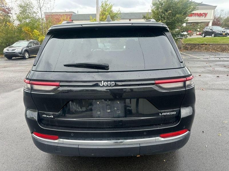 Certified. Diamond Black Crystal Pearlcoat 2023 Jeep Grand Cherokee Laredo 4WD 8-Speed Automatic 3.6L V6 24V VVT Bluetooth, Satellite Radio, Back Up Camera, One Owner, AutoCheck Vehicle History Reports with Buyback Protection, 6 Speakers, Air Conditioning, Cloth Seats, ParkView Rear Back-Up Camera, Power driver seat, Power steering, Power windows, Quick Order Package 23A Laredo, Radio data system, Radio: Uconnect 5 w/8.4'' Display, Remote keyless entry, Steering wheel mounted audio controls. 90 DAY 3000 MILE WARRANTY, ROADSIDE ASSISTANCE, TOWING, 90 DAY SIRUSXM TRIAL.