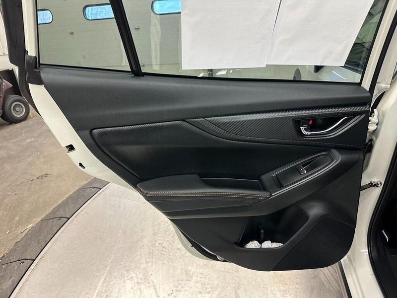 THIS VEHICLE INCLUDES THE FOLLOWING OPTIONS AND FEATURES: Moonroof & Navigation & harman/kardon Audio (harman/kardon Speaker System, Power Moonroof, and Radio: Subaru STARLINK 8.0'' Multimedia Nav System), 6 Speakers, Air Conditioning, AM/FM radio: SiriusXM, CD player, Exterior Parking Camera Rear, Front fog lights, Heated Front Bucket Seats, Heated front seats, Leather-Trimmed Upholstery, Navigation System, Power driver seat, Power steering, Power windows, Radio data system, Radio: Subaru STARLINK 8.0'' Multimedia Plus System, Remote keyless entry, Steering wheel mounted audio controls, 3.70 Axle Ratio, 4-Wheel Disc Brakes, ABS brakes, Alloy wheels, Anti-whiplash front head restraints, Auto High-beam Headlights, Auto-Dimming Exterior Mirror w/Approach Light, Auto-Dimming Mirror w/Compass & HomeLink, Automatic temperature control, Brake assist, Bumpers: body-color, Driver door bin, Driver vanity mirror, Dual front impact airbags, Dual front side impact airbags, Electronic Stability Control, Emergency communication system: STARLINK Safety and Security (Subscription Required), Four wheel independent suspension, Front anti-roll bar, Front Bucket Seats, Front Center Armrest, Front reading lights, Fully automatic headlights, Heated door mirrors, Illuminated entry, Knee airbag, Low tire pressure warning, Map & Dome Lights LED Upgrade, Occupant sensing airbag, Outside temperature display, Overhead airbag, Overhead console, Panic alarm, Passenger door bin, Passenger vanity mirror, Power door mirrors, Rear anti-roll bar, Rear Bumper Cover, Rear seat center armrest, Rear Seatback Protector, Rear window defroster, Rear window wiper, Security system, Speed control, Speed-sensing steering, Split folding rear seat, Spoiler, STARLINK/Apple CarPlay/Android Auto, Tachometer, Telescoping steering wheel, Tilt steering wheel, Traction control, Trip computer, Turn signal indicator mirrors, Variably intermittent wipers, and Wheels: 18'' x 7.0J Alum Alloy Blk w/Machine Finish.