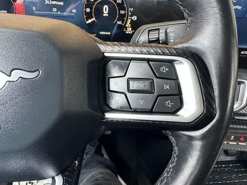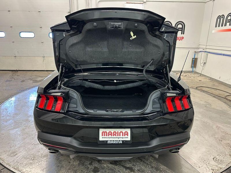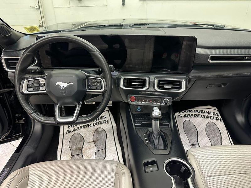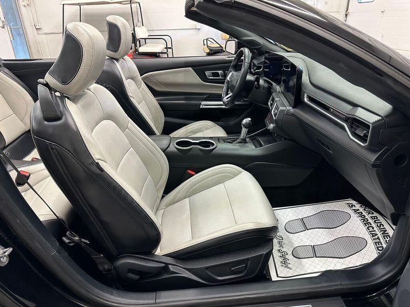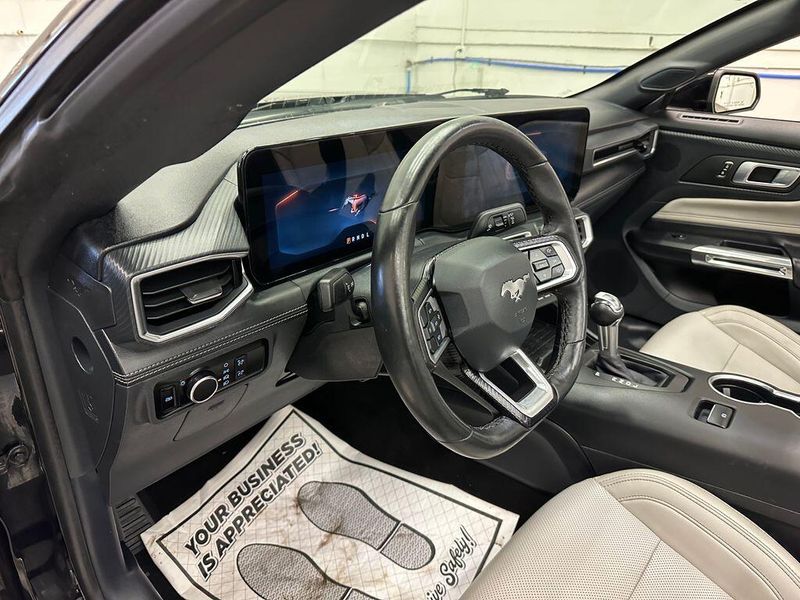 Certified. Shadow Black 2024 Ford Mustang EcoBoost Premium RWD 10-Speed Automatic EcoBoost 2.3L I4 GTDi DOHC Turbocharged VCT Leather, Bluetooth, Satellite Radio, Back Up Camera, One Owner, Passed Dealer Inspection, Fresh Detail, AutoCheck Vehicle History Reports with Buyback Protection, Fresh Oil Change, Remote Start, Heated Seats, Clean Carfax, 9 Speakers, ABS brakes, Air Conditioning, Alloy wheels, AM/FM radio: SiriusXM with 360L, AM/FM Stereo, Climate Controlled Heated/Cooled Front Seats, Compass, Convertible roof lining, Electronic Stability Control, Exterior Parking Camera Rear, Front dual zone A/C, HD Radio, Heated door mirrors, Heated front seats, Heated steering wheel, Illuminated entry, Low tire pressure warning, Power driver seat, Power passenger seat, Power steering, Power windows, Radio data system, Rear Parking Sensors, Remote keyless entry, Security Package, SiriusXM w/360L, Steering wheel mounted audio controls, SYNC 4.0 QNX, Traction control, Ventilated front seats. 90 DAY 3000 MILE WARRANTY, ROADSIDE ASSISTANCE, TOWING, 90 DAY SIRUSXM TRIAL.