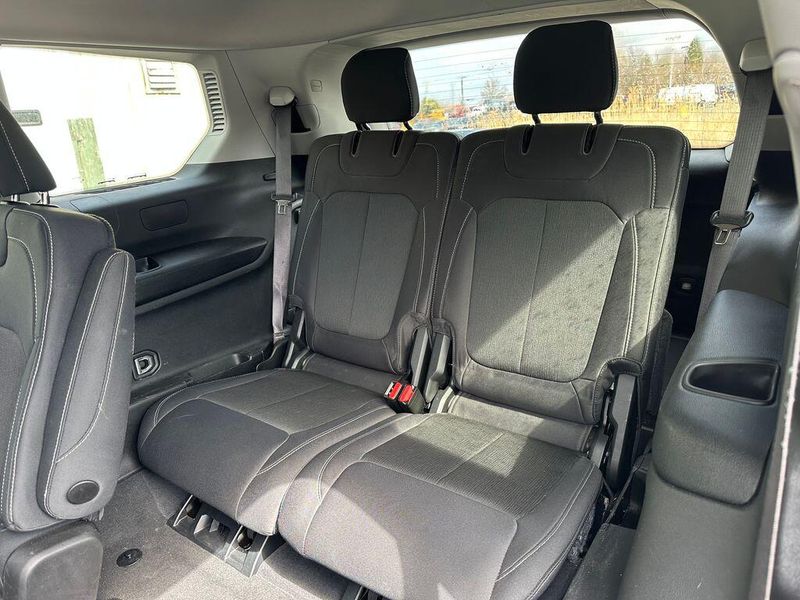 THIS VEHICLE INCLUDES THE FOLLOWING OPTIONS AND FEATURES: Quick Order Package 23A Laredo, 3rd row seats: split-bench, 6 Speakers, Air Conditioning, Cloth Seats, ParkView Rear Back-Up Camera, Power driver seat, Power steering, Power windows, Radio data system, Radio: Uconnect 5 w/8.4'' Display, Remote keyless entry, Steering wheel mounted audio controls, 3.45 Rear Axle Ratio, 4-Wheel Disc Brakes, ABS brakes, Alloy wheels, Anti-whiplash front head restraints, Automatic temperature control, Brake assist, Bumpers: body-color, Compass, Delay-off headlights, Driver door bin, Driver vanity mirror, Dual front impact airbags, Dual front side impact airbags, Electronic Stability Control, Emergency communication system, Four wheel independent suspension, Front anti-roll bar, Front Bucket Seats, Front Center Armrest w/Storage, Front dual zone A/C, Front License Plate Bracket, Front reading lights, Fully automatic headlights, Heated door mirrors, Illuminated entry, Knee airbag, Low tire pressure warning, Manual Fold Seatbacks, Normal Duty Suspension, Occupant sensing airbag, Outside temperature display, Overhead airbag, Overhead console, Panic alarm, Passenger door bin, Passenger vanity mirror, Power door mirrors, Rear air conditioning, Rear anti-roll bar, Rear reading lights, Rear window defroster, Rear window wiper, Reclining 3rd row seat, Security system, Speed control, Speed-Sensitive Wipers, Split folding rear seat, Spoiler, Tachometer, Telescoping steering wheel, Tilt steering wheel, Traction control, Trip computer, Variably intermittent wipers, Voltmeter, and Wheels: 18'' x 8.0'' Fully Painted Aluminum.
